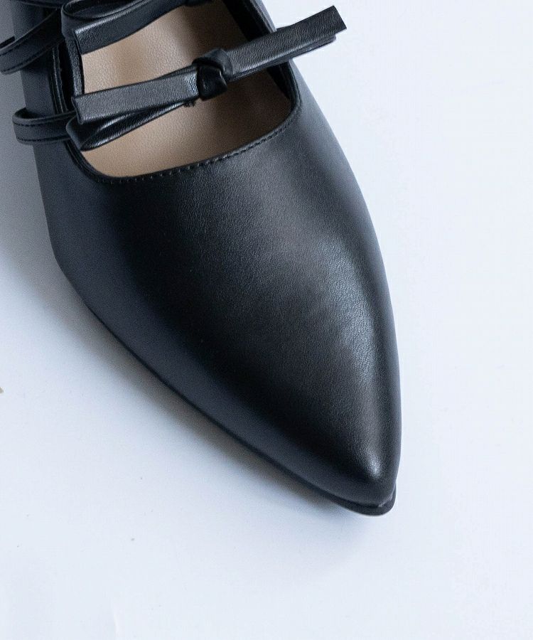 リボンが足元にフェミニンさを加え、シンプルなデザインにかわいさをプラスします。