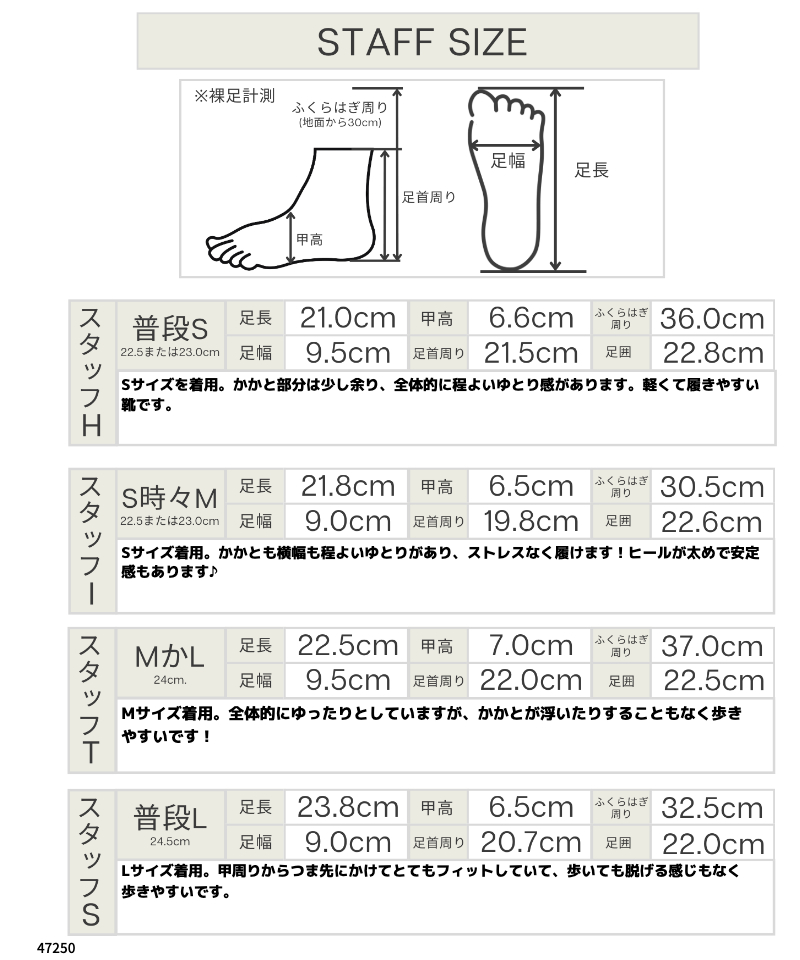 サイズ S(22.5~23cm) M(23.5~24cm) L(24.5~25cm)