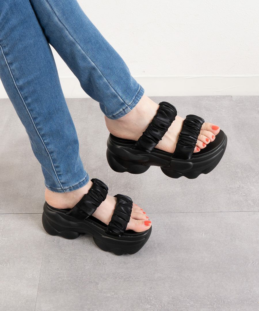 【厚底シフォン2ベルトサンダル】
