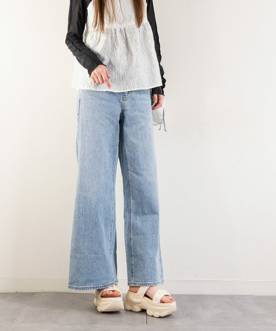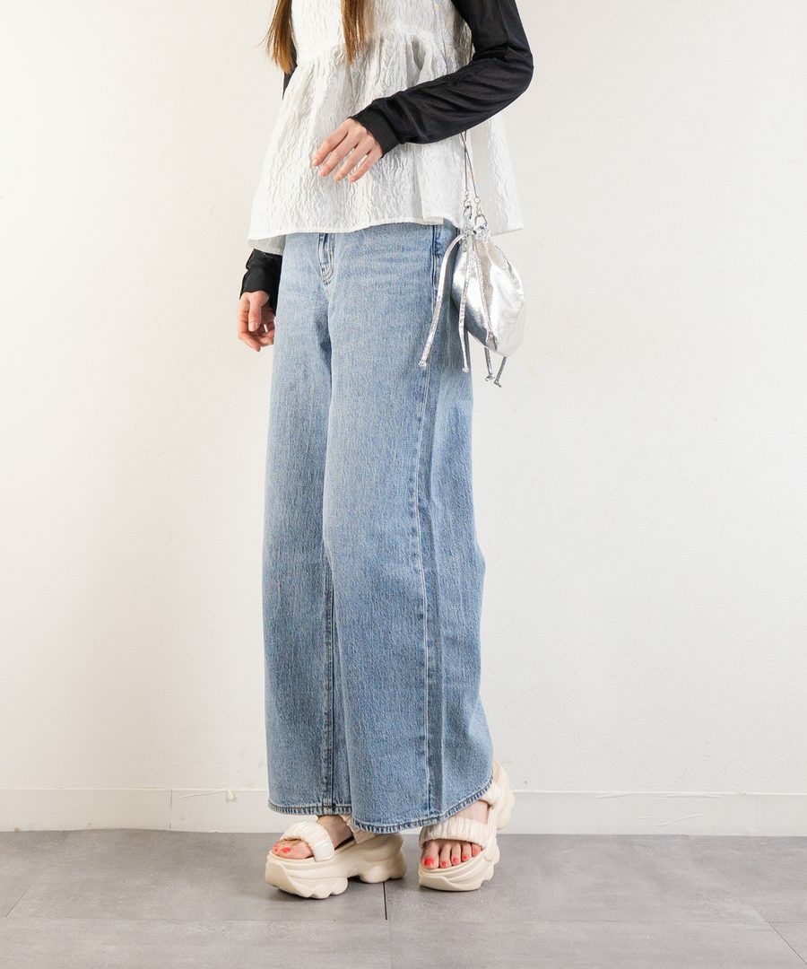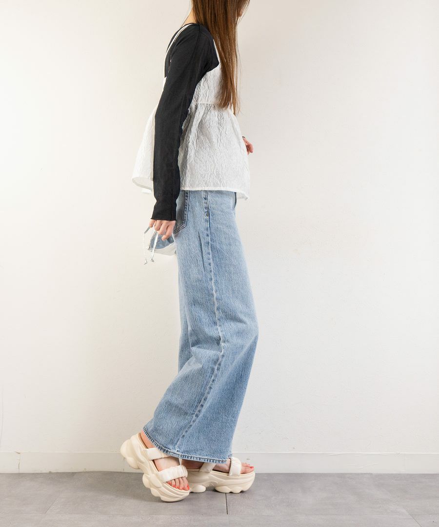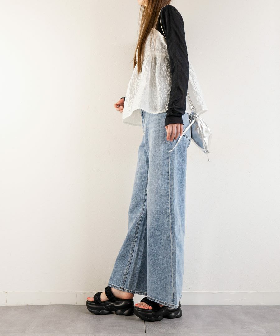 ワイドレッグのパンツやスカートに合わせることでバランスの取れたスタイルに仕上がります。
