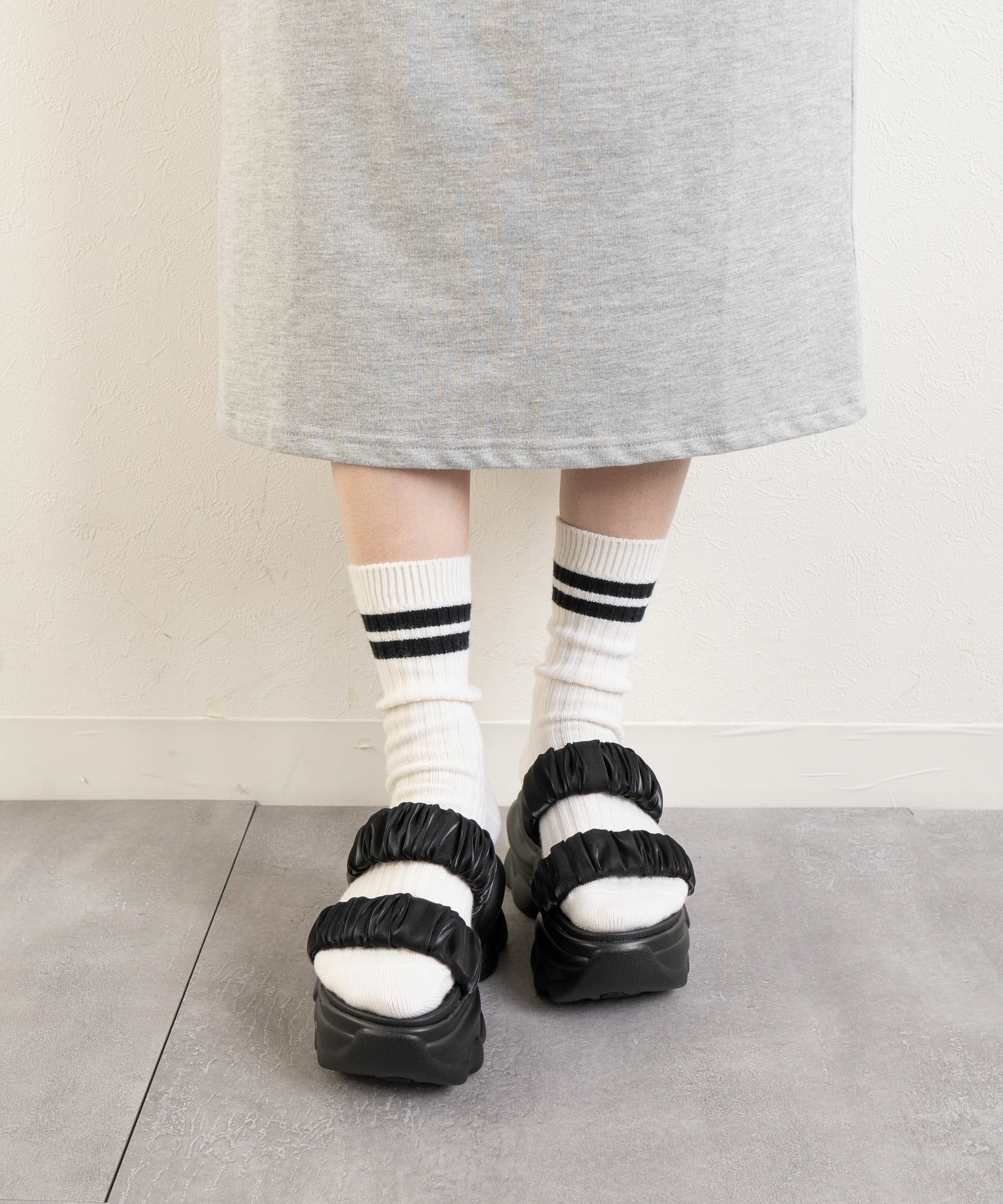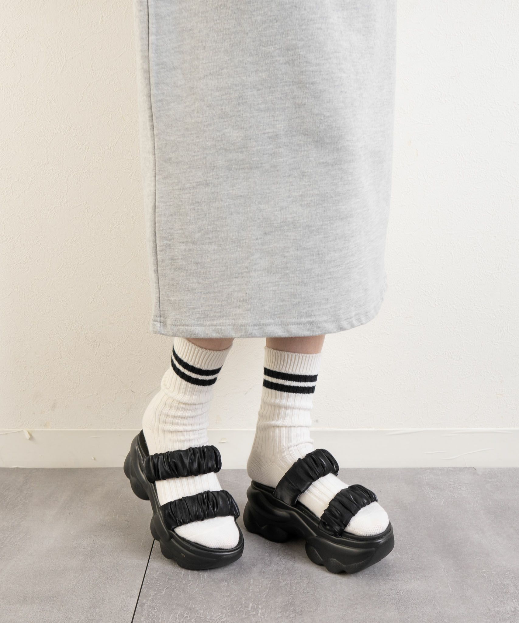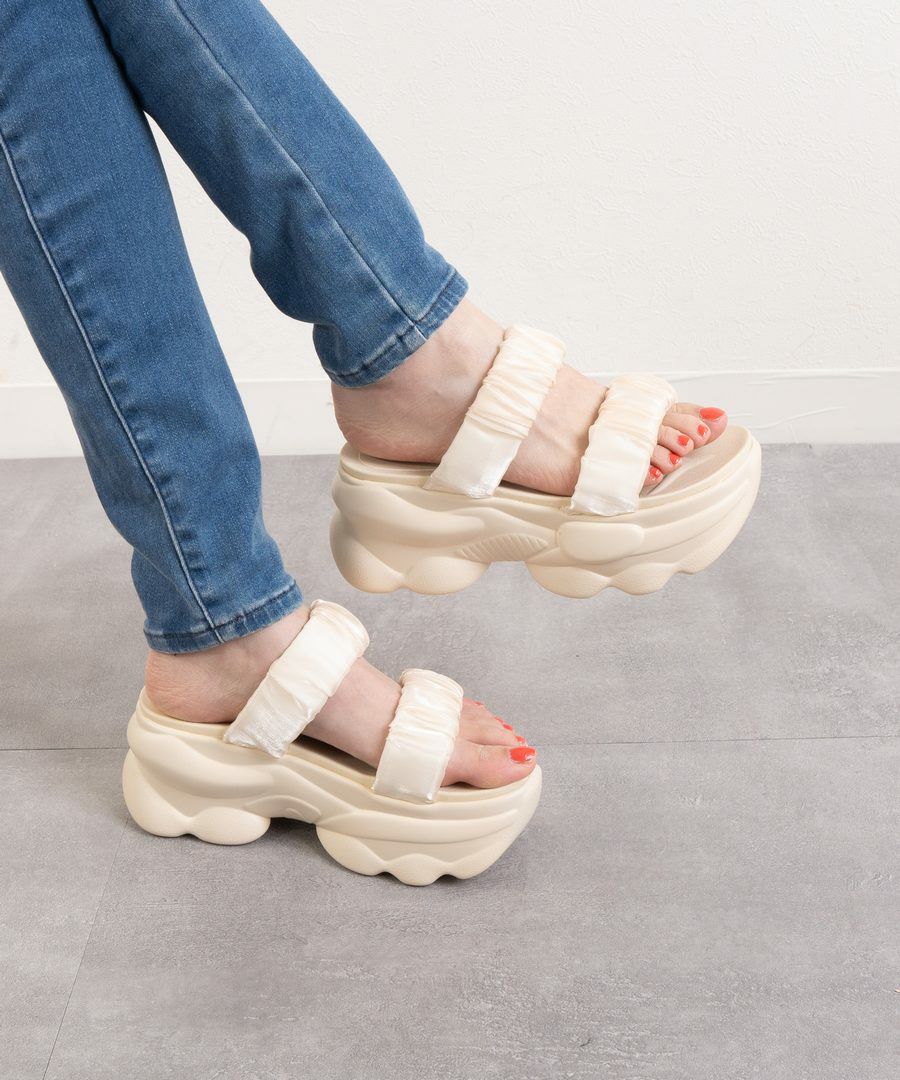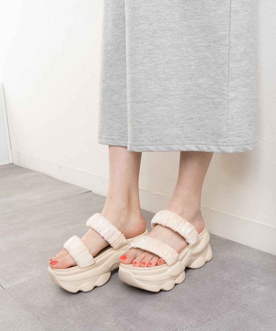 厚底ソールもベルトもマシュマロのようなボリューム!