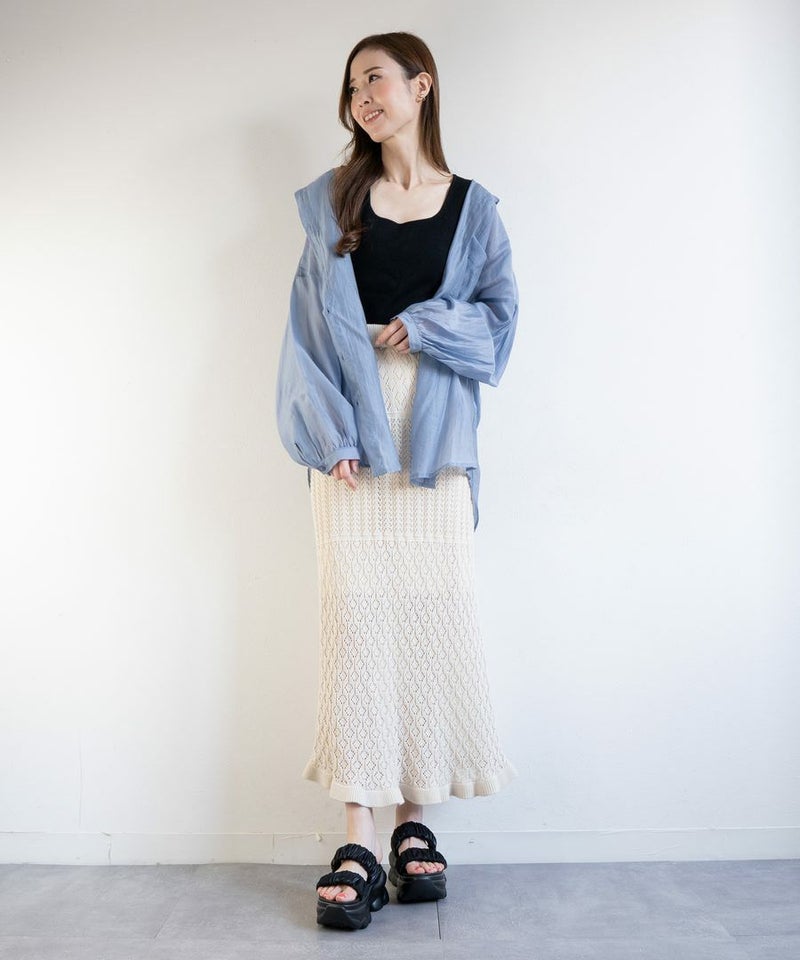 ワイドレッグのパンツやスカートに合わせることでバランスの取れたスタイルに仕上がります。