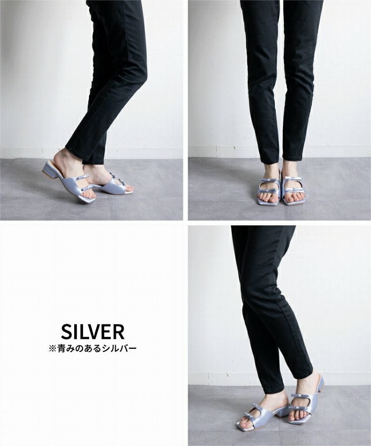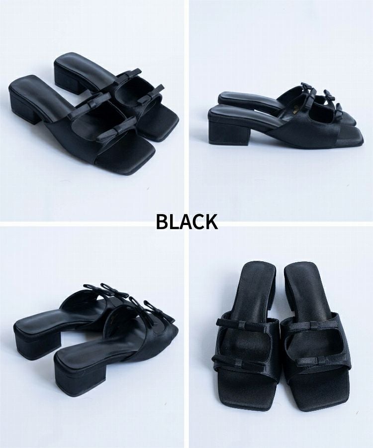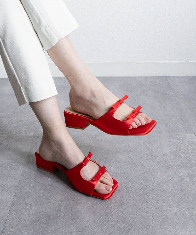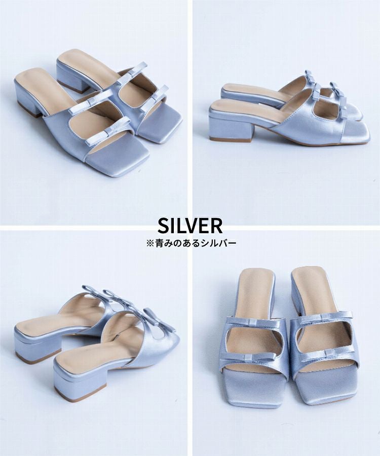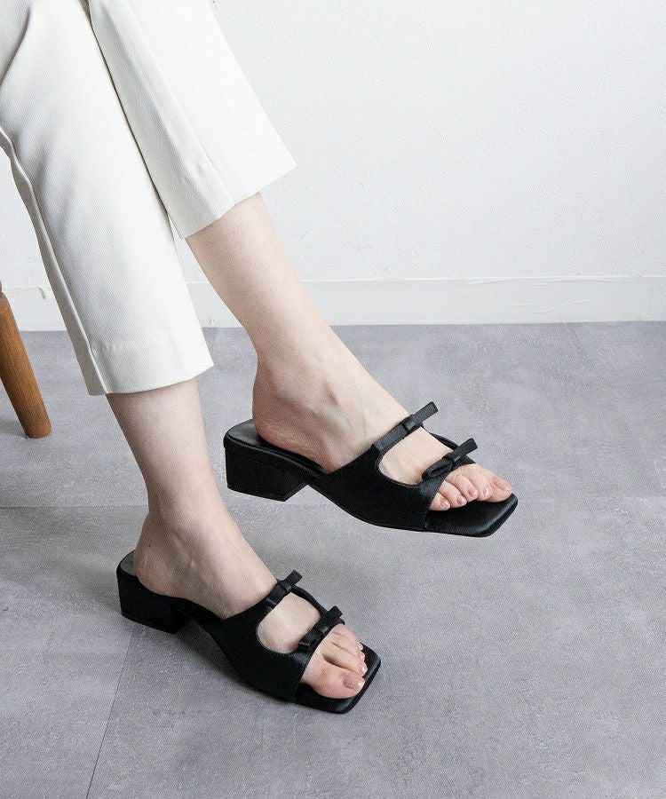 【Wリボンスクエアヒールサンダル】