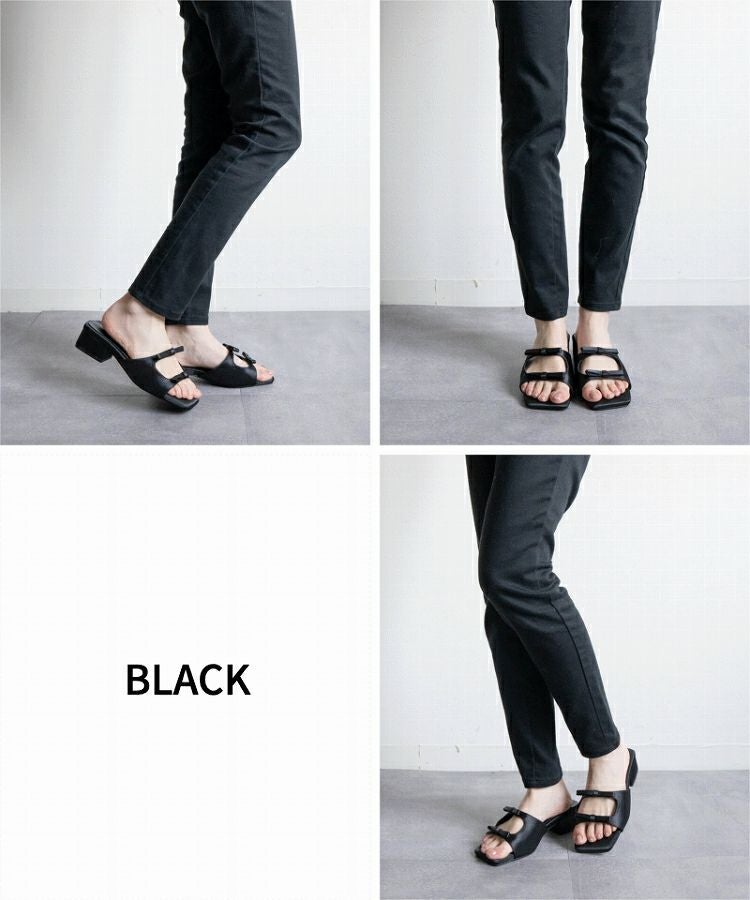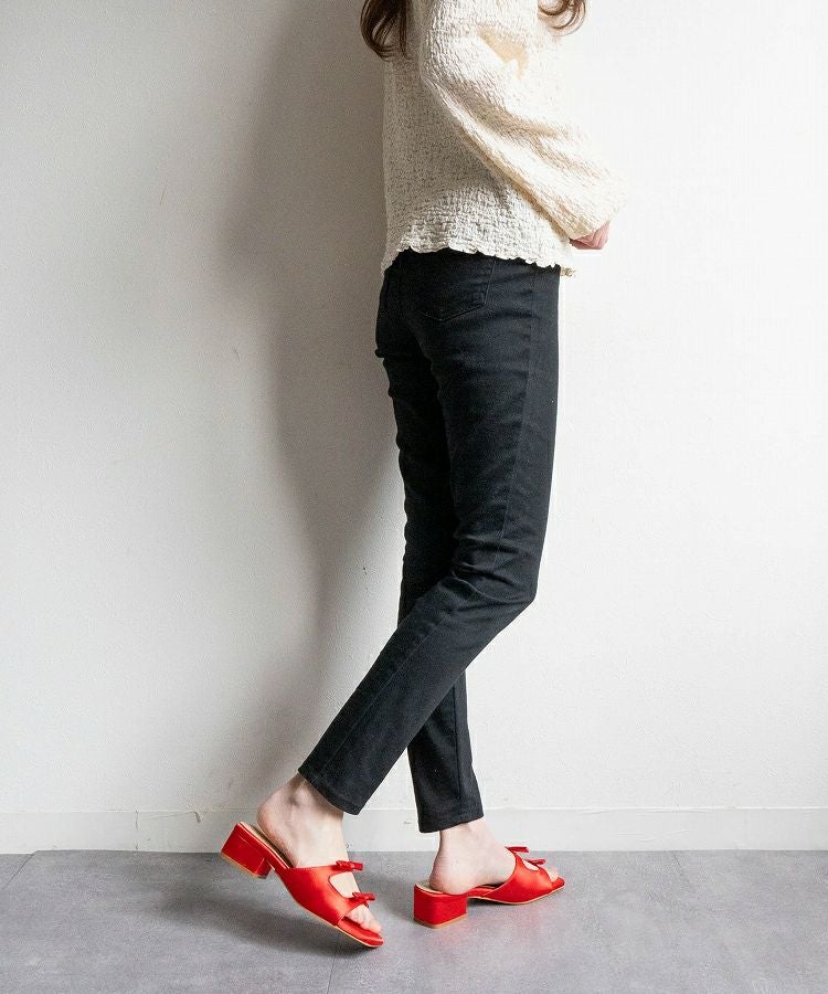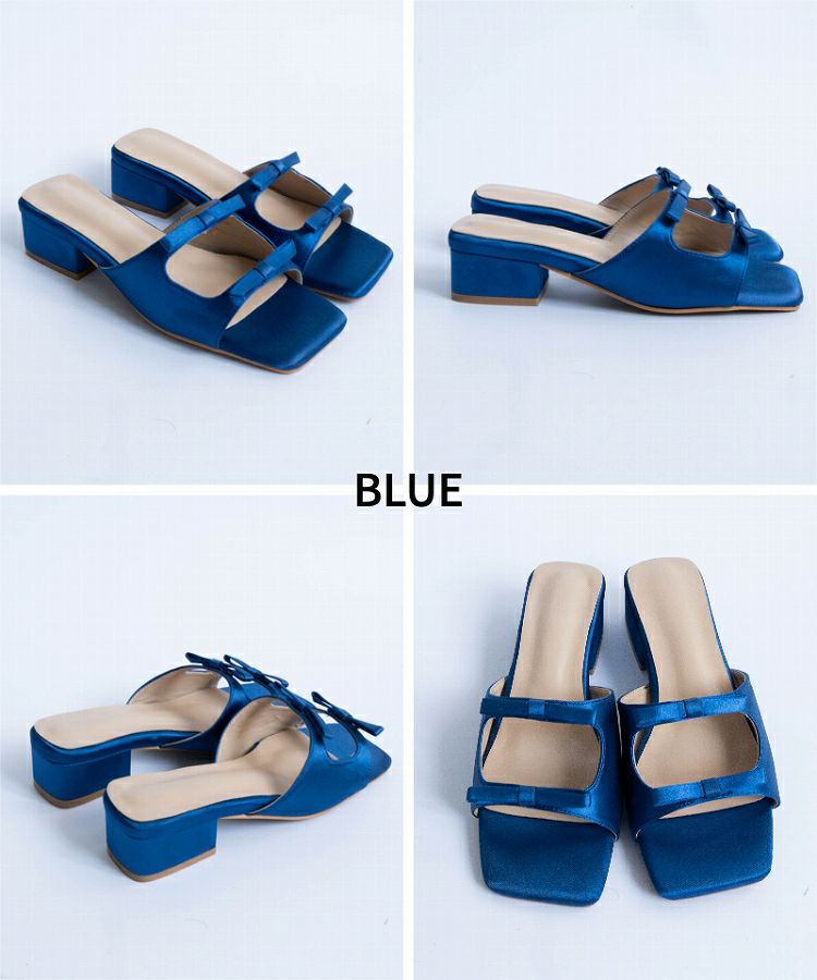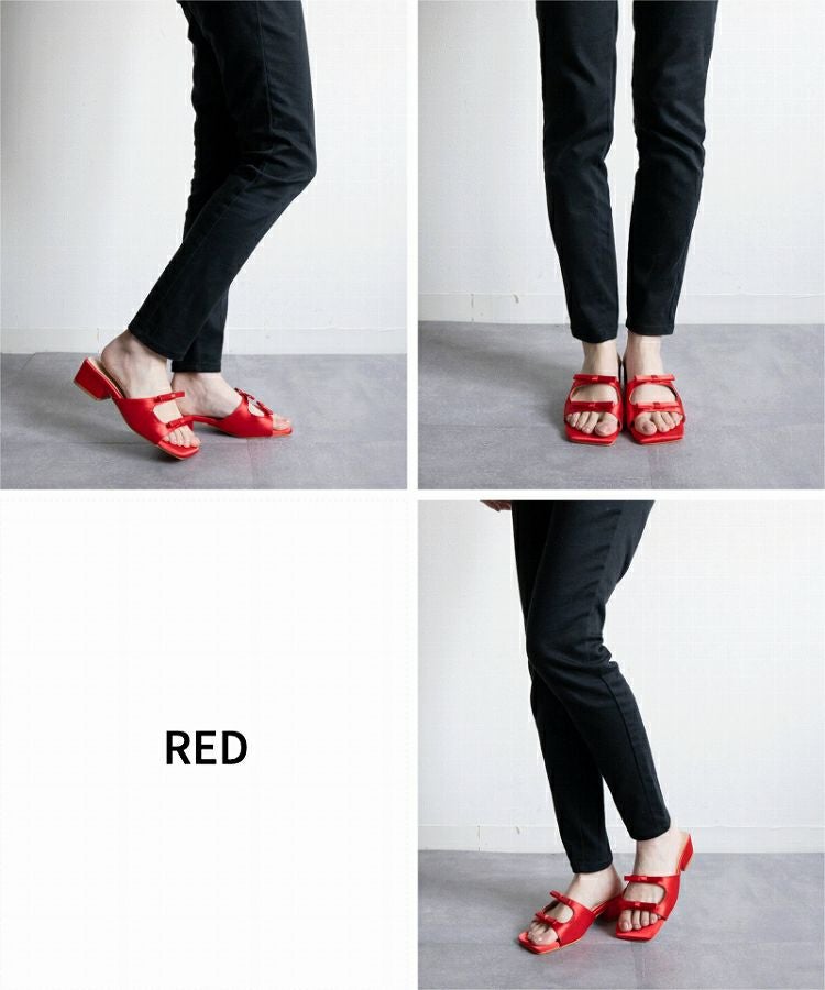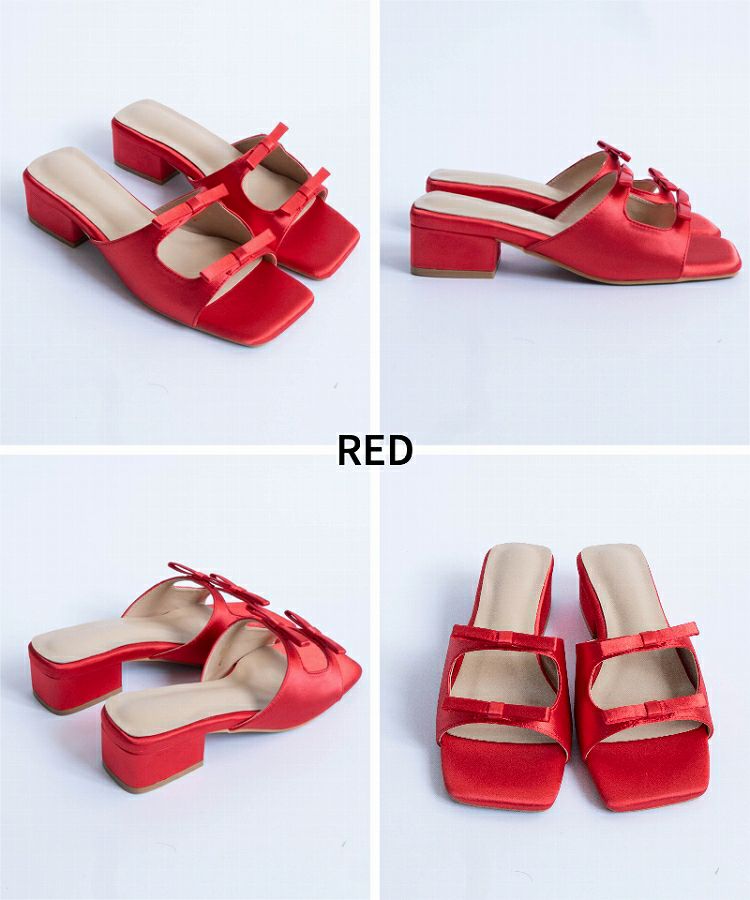 【Wリボンスクエアヒールサンダル】