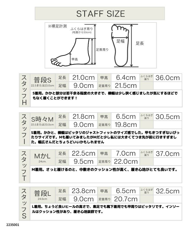 サイズ S(22.5~23cm) M(23.5~24cm) L(24.5~25cm)