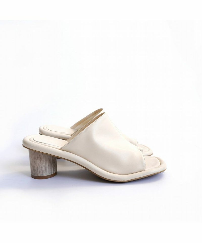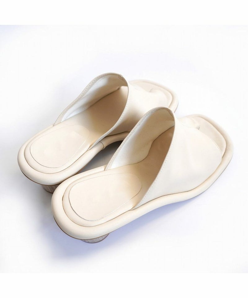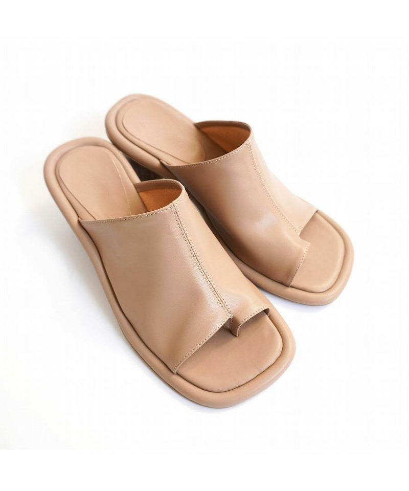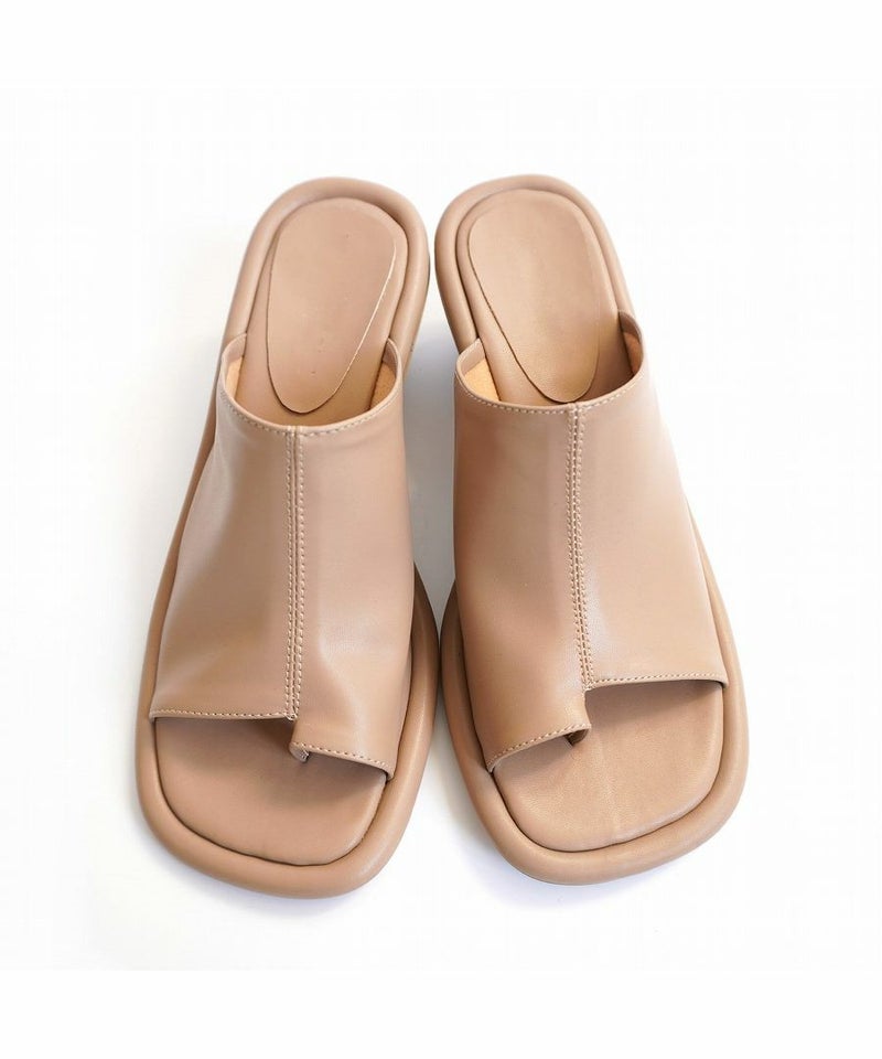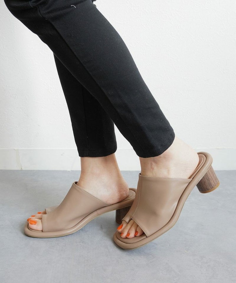 木目調の丸ヒールが柔らかい雰囲気のトングヒールサンダル!