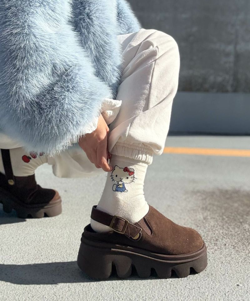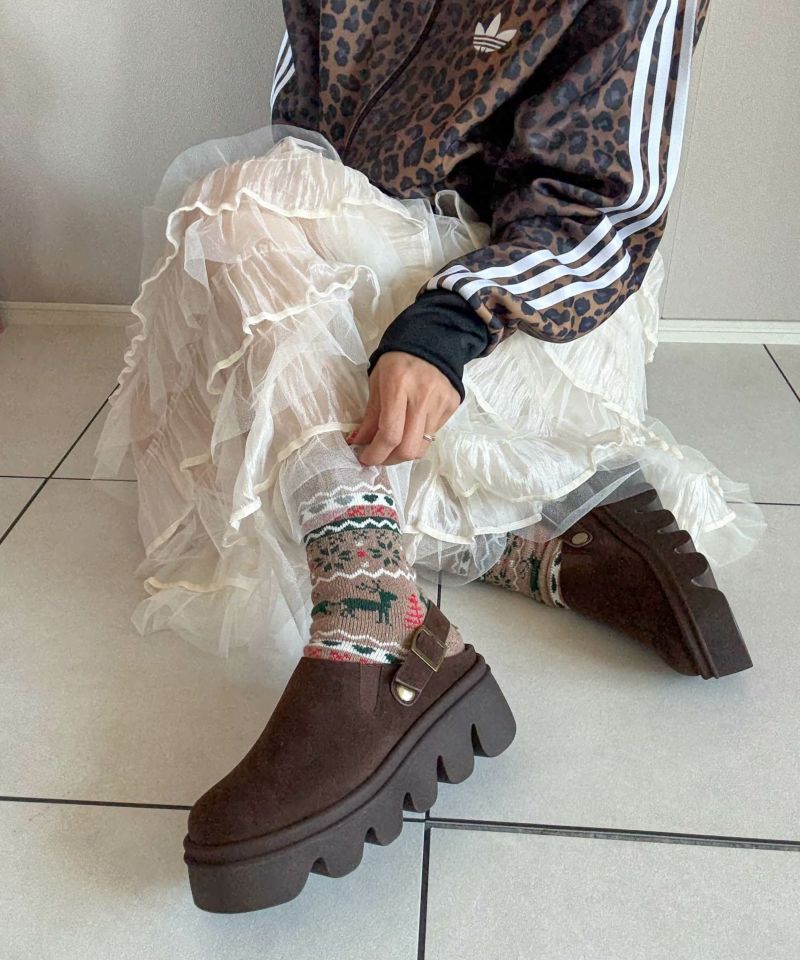 ぽってりとした厚みのあるフォルムと、凹凸のある存在感抜群のソールが足元に個性をプラス。