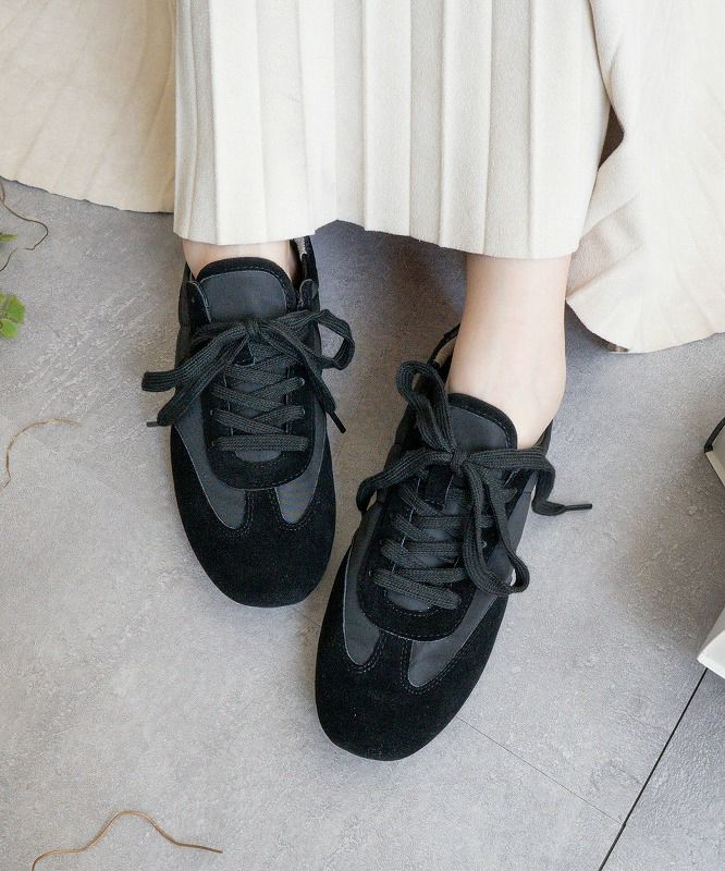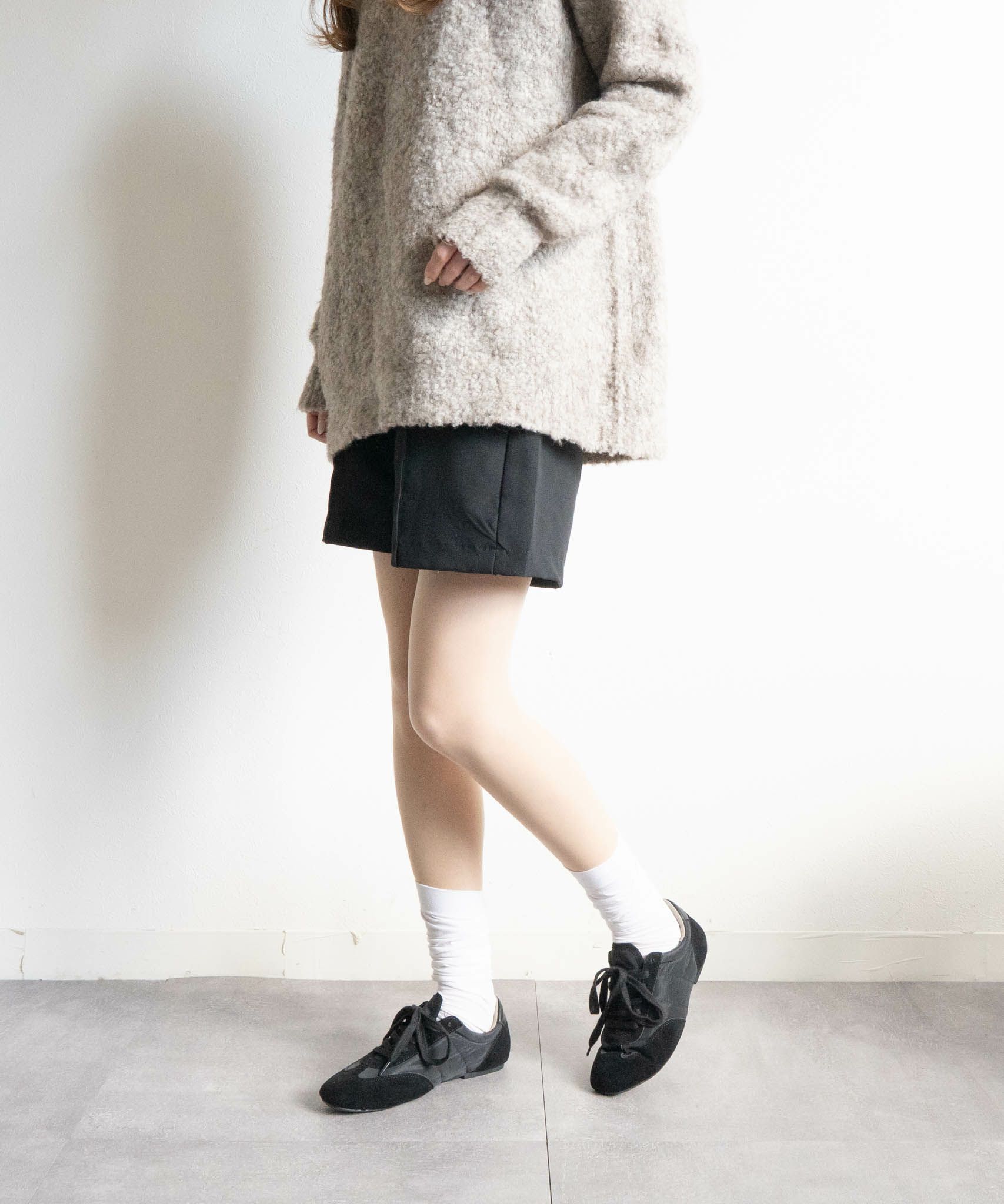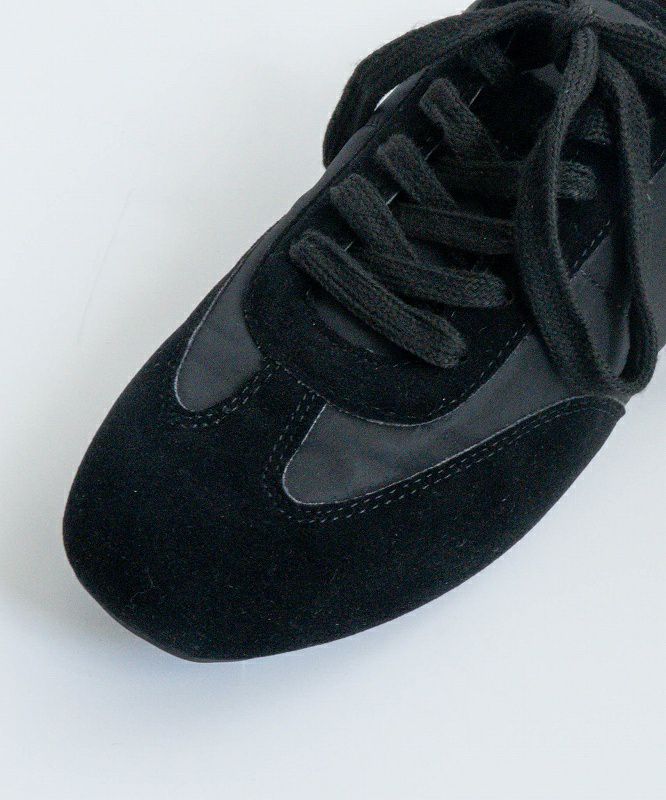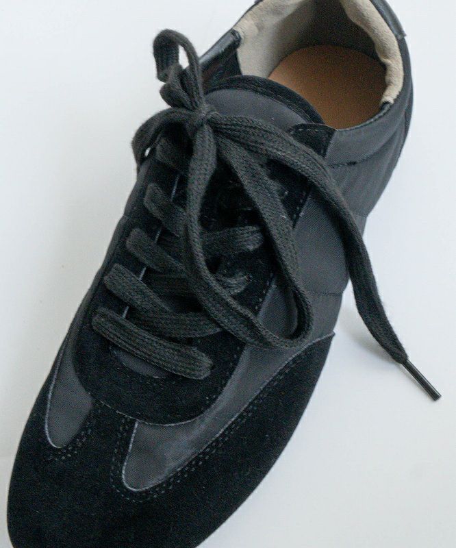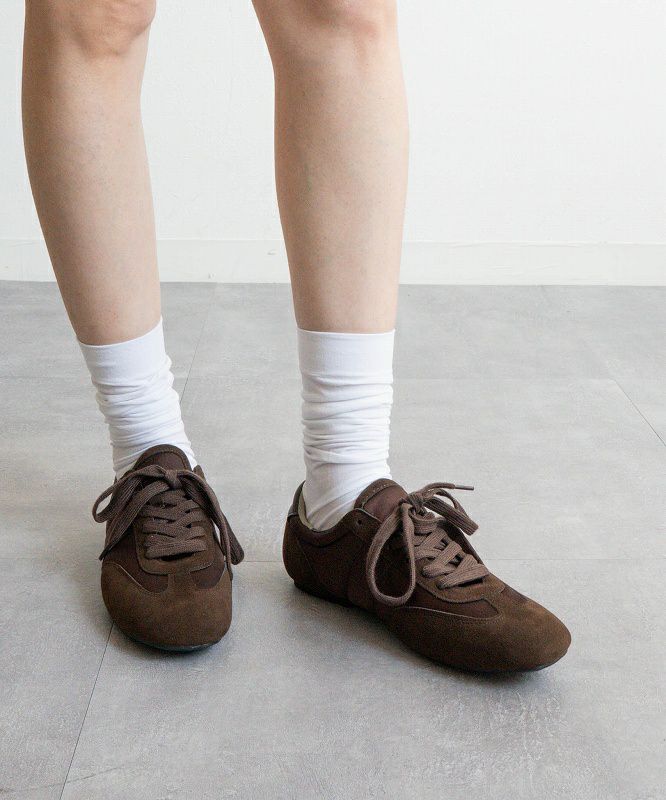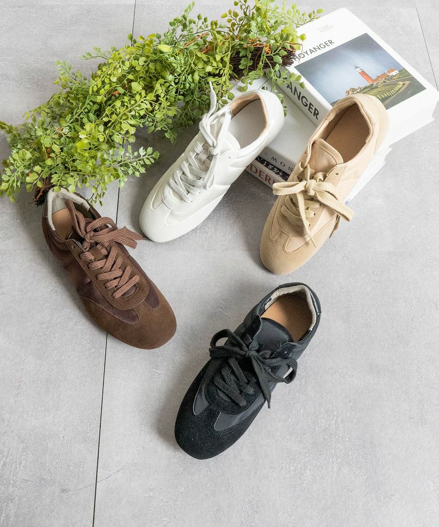 レースアップ仕様で足にフィットしやすく、丸すぎず細すぎない絶妙なシルエットも魅力。