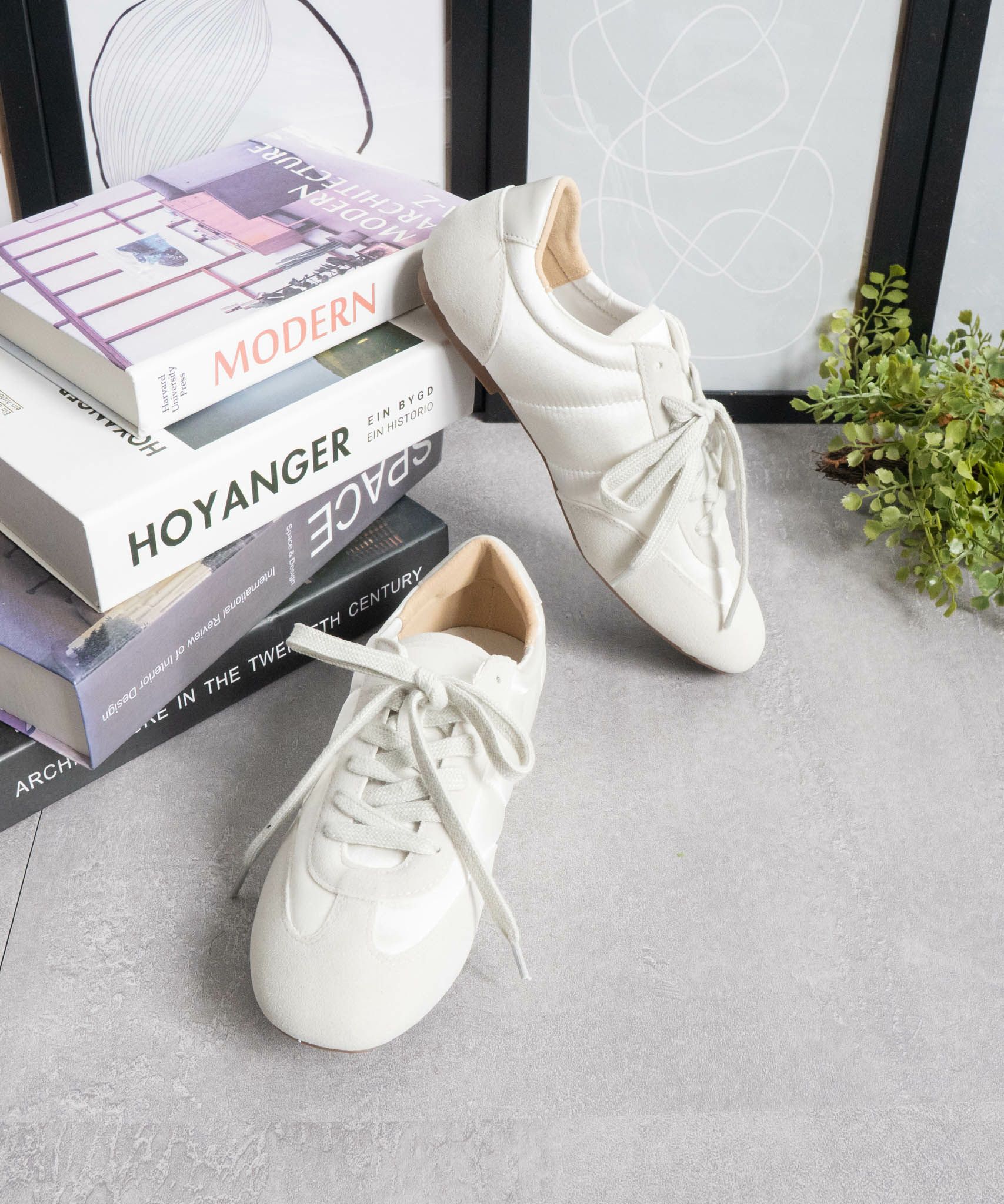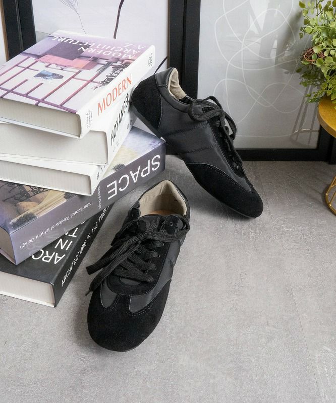 シンプルだけど、素材のツヤとディテールのセンスで差がつくシューズなので、ミニマル系コーデやスポーツMIX、キレイめカジュアルにハマります。