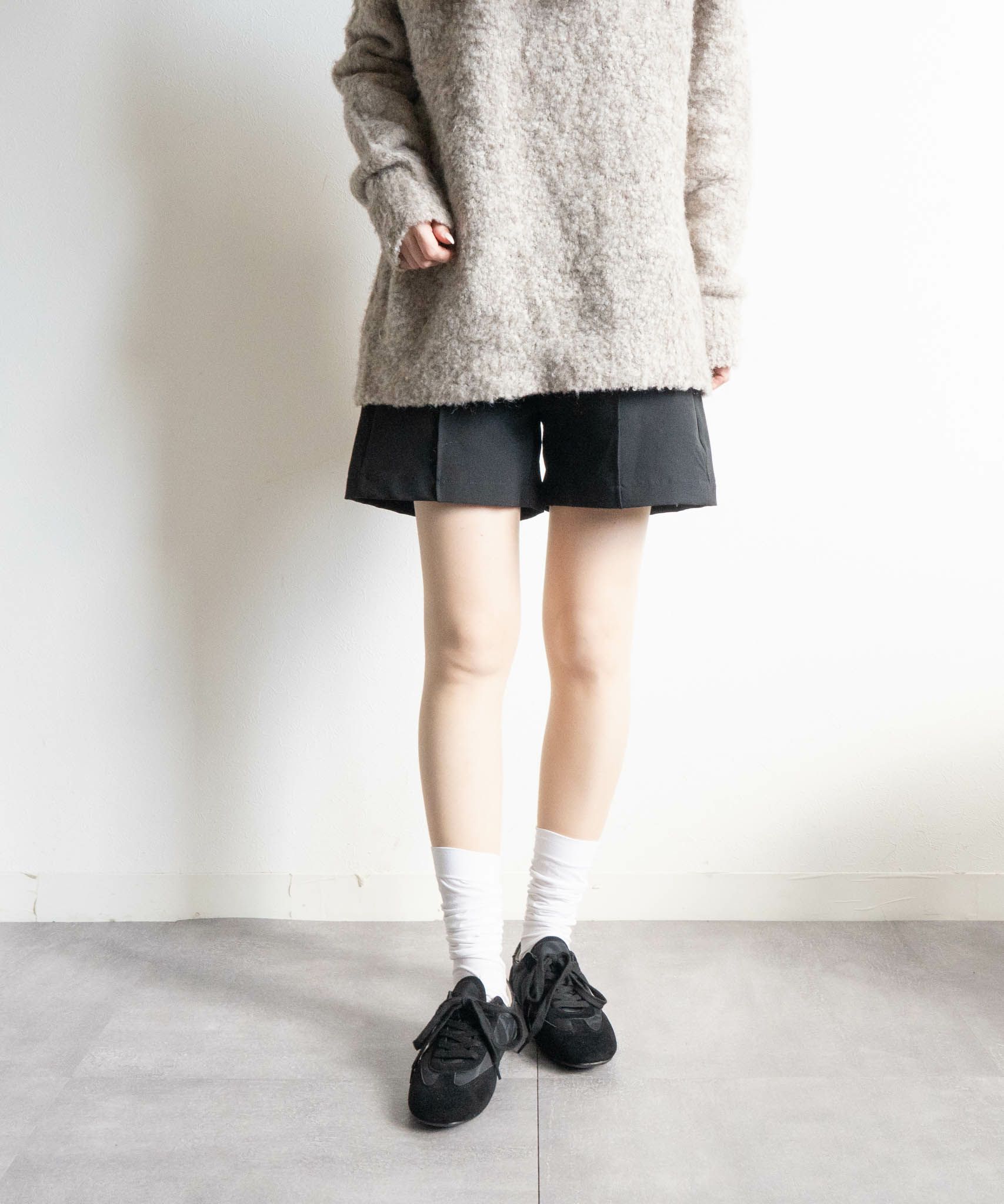 カラーソックスや足元にちょっとしたレイヤードを入れると、よりスタイリングに奥行きが出て◎