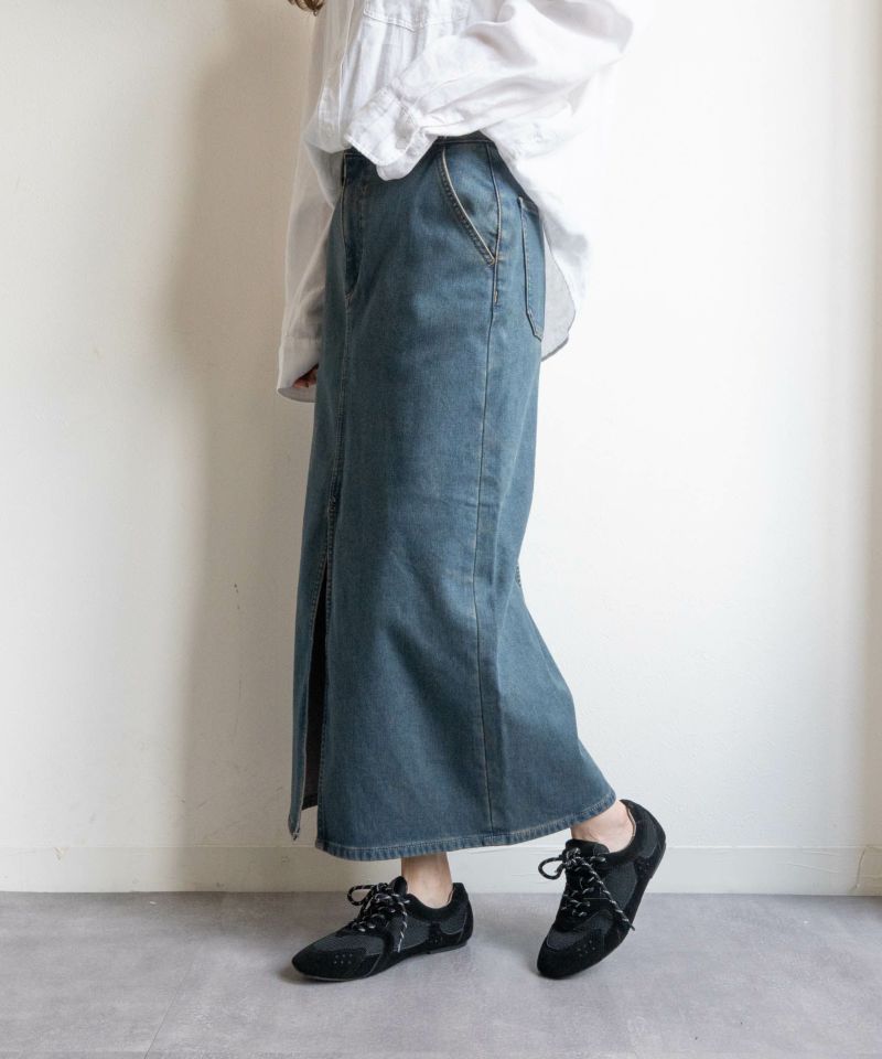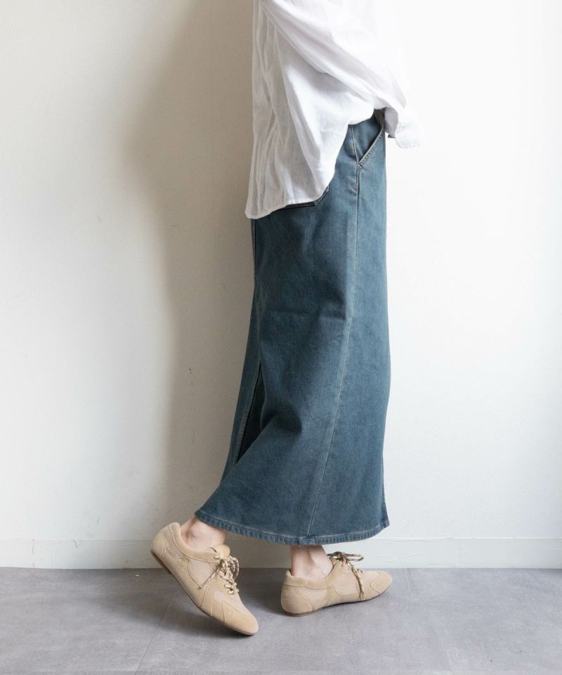 ワンピースやスカートと合わせて抜け感をプラスするのもおすすめ。