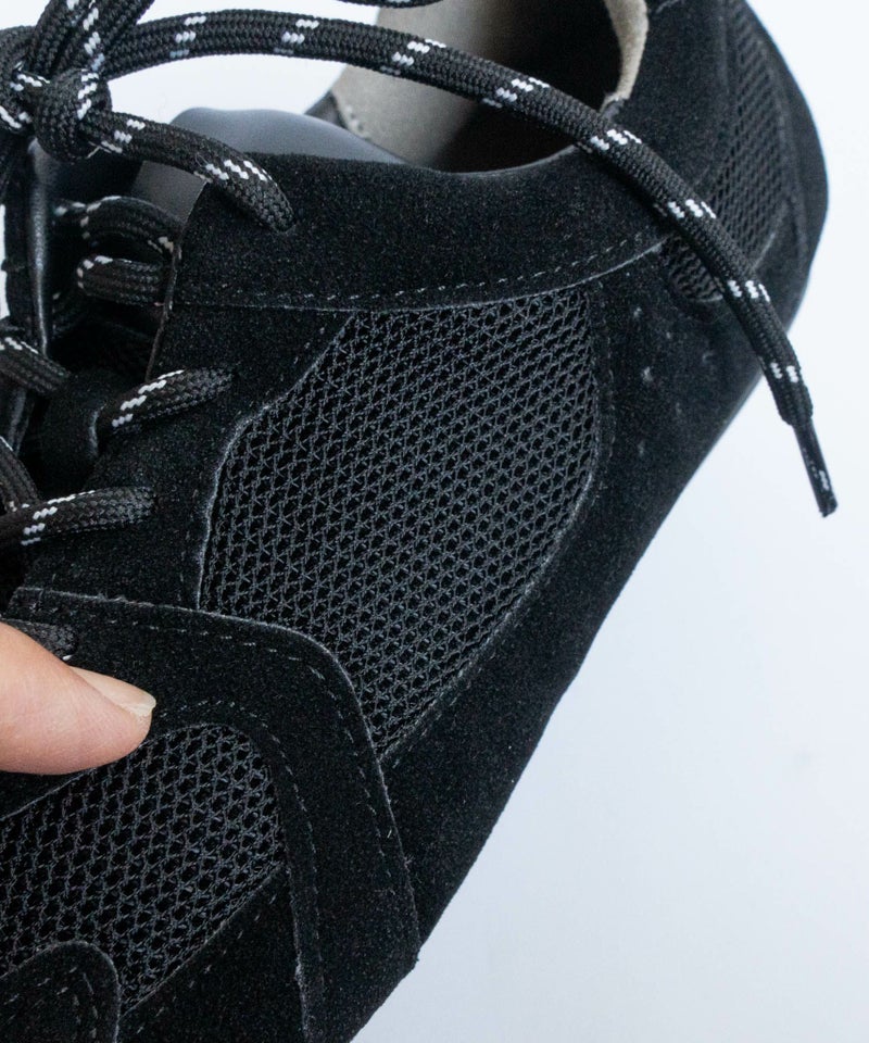 通気性の高いメッシュ素材を使用し、長時間履いても快適。