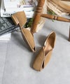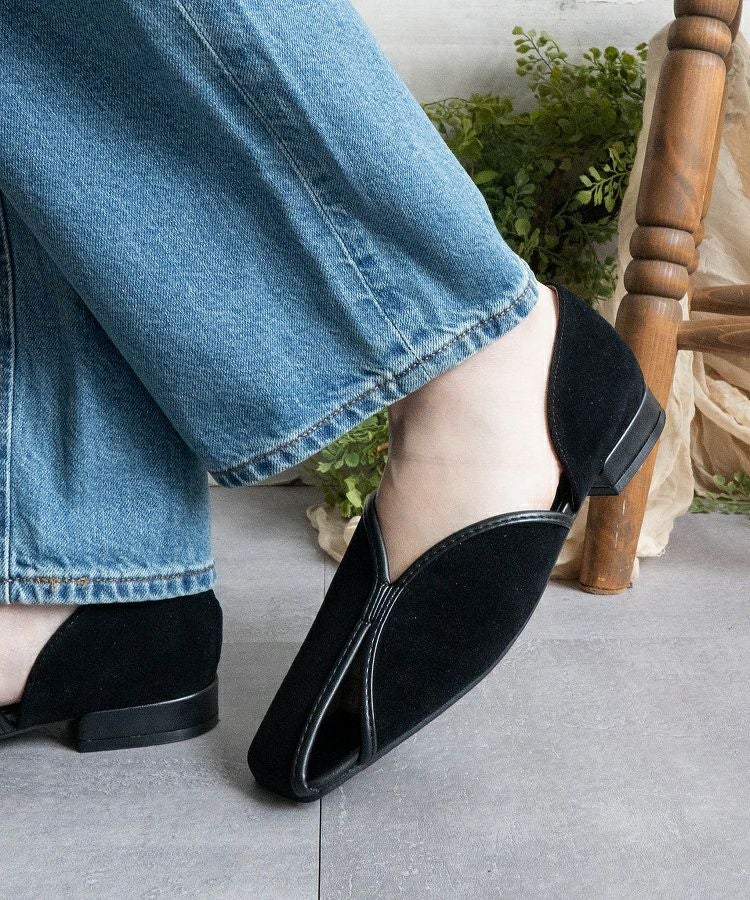 Vカットのラインは足の甲をすっきり&きれいに見せてくれる効果があり、ヒールが高すぎなくても脚長効果が◎