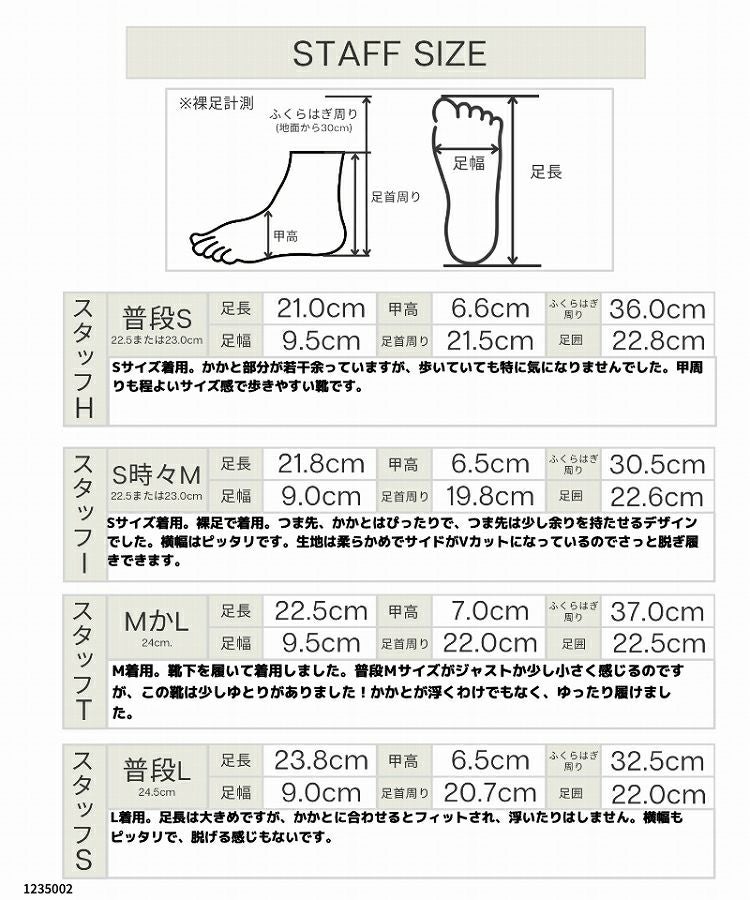 サイズ S(22.5~23cm) M(23.5~24cm) L(24.5~25cm)