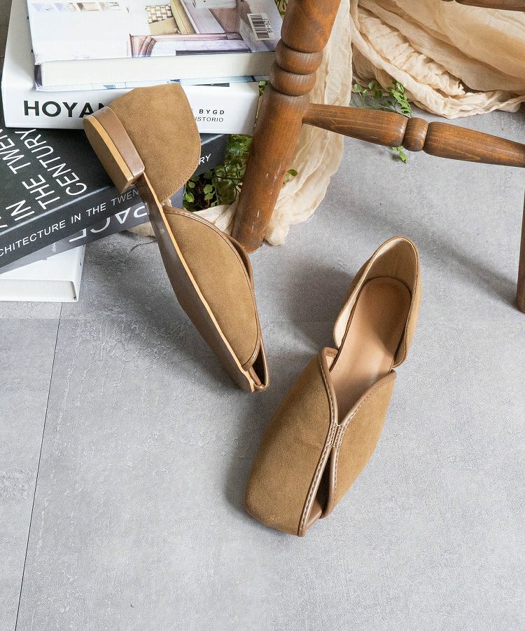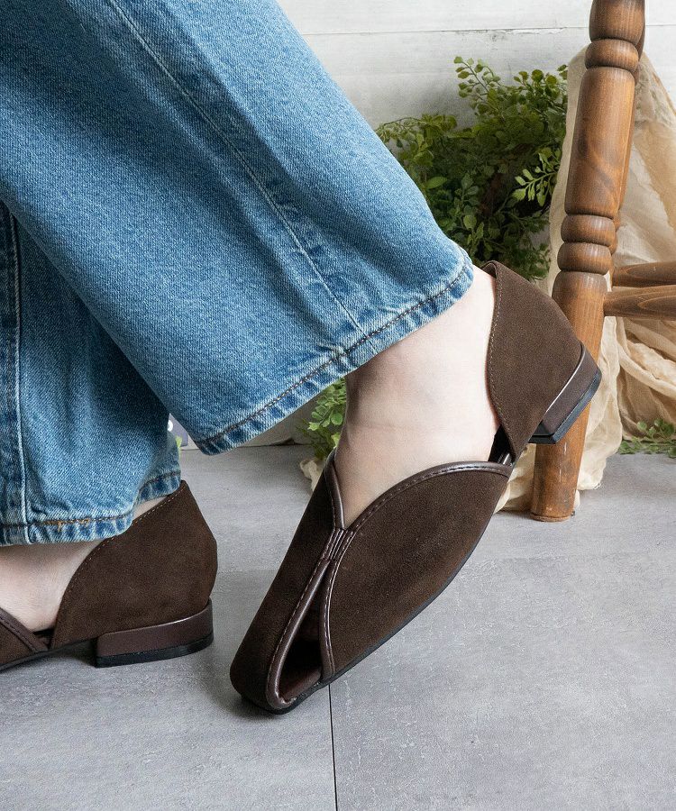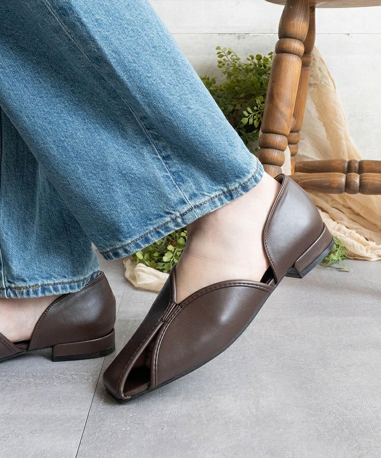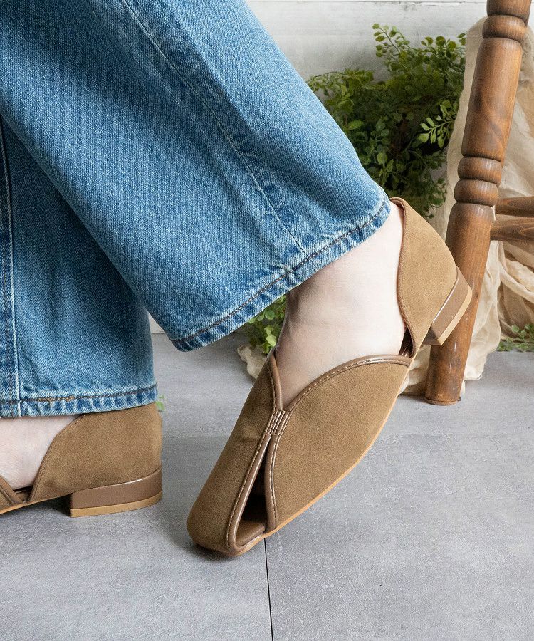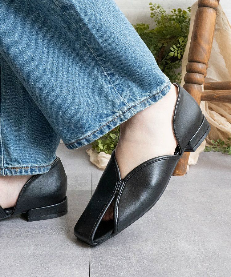 Vカットのラインは足の甲をすっきり&きれいに見せてくれる効果があり、ヒールが高すぎなくても脚長効果が◎