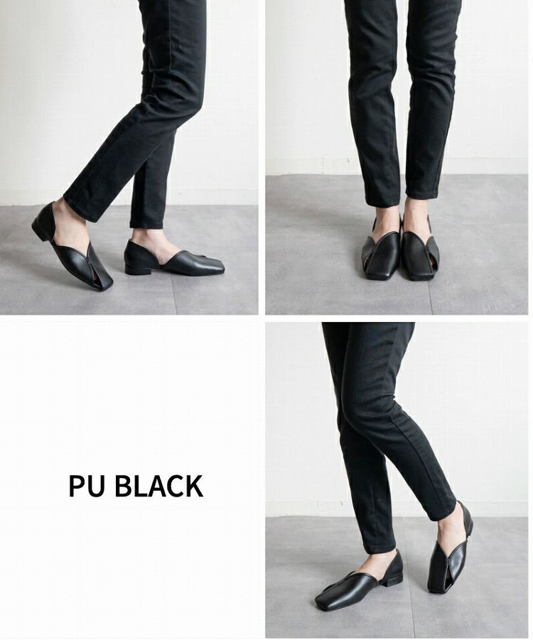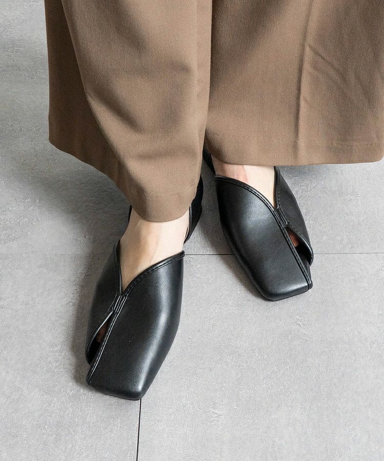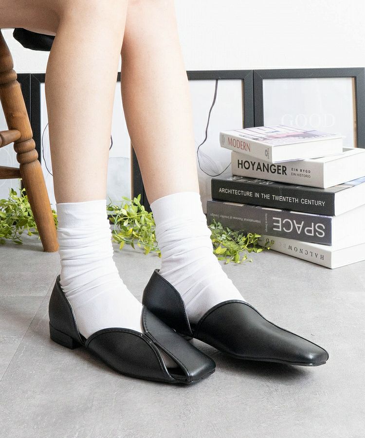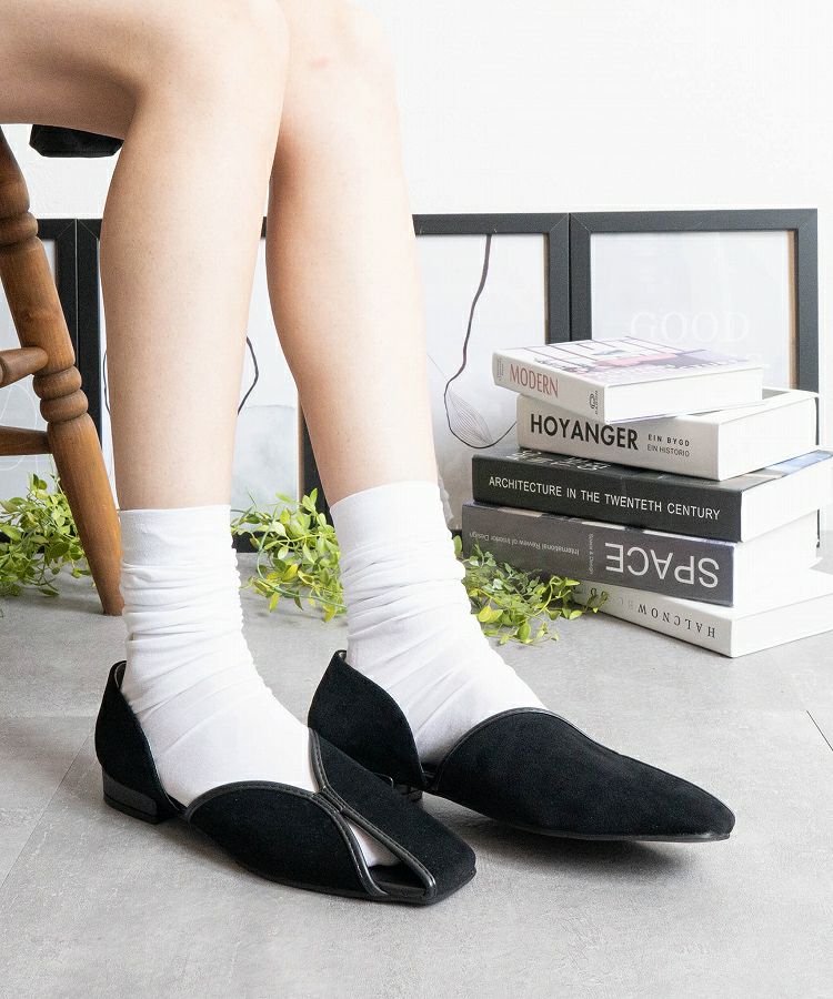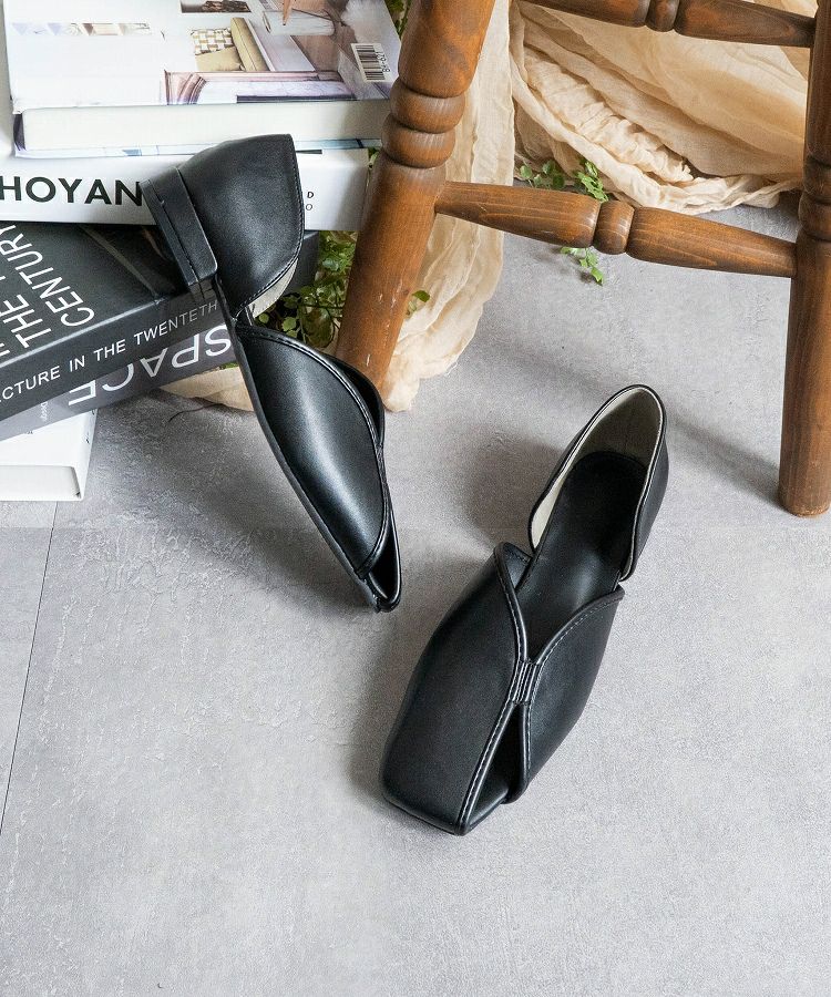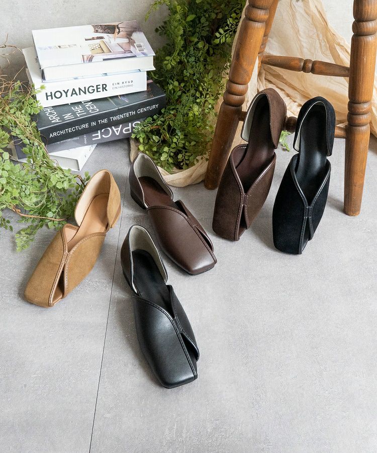 Vカットのラインは足の甲をすっきり&きれいに見せてくれる効果があり、ヒールが高すぎなくても脚長効果が◎