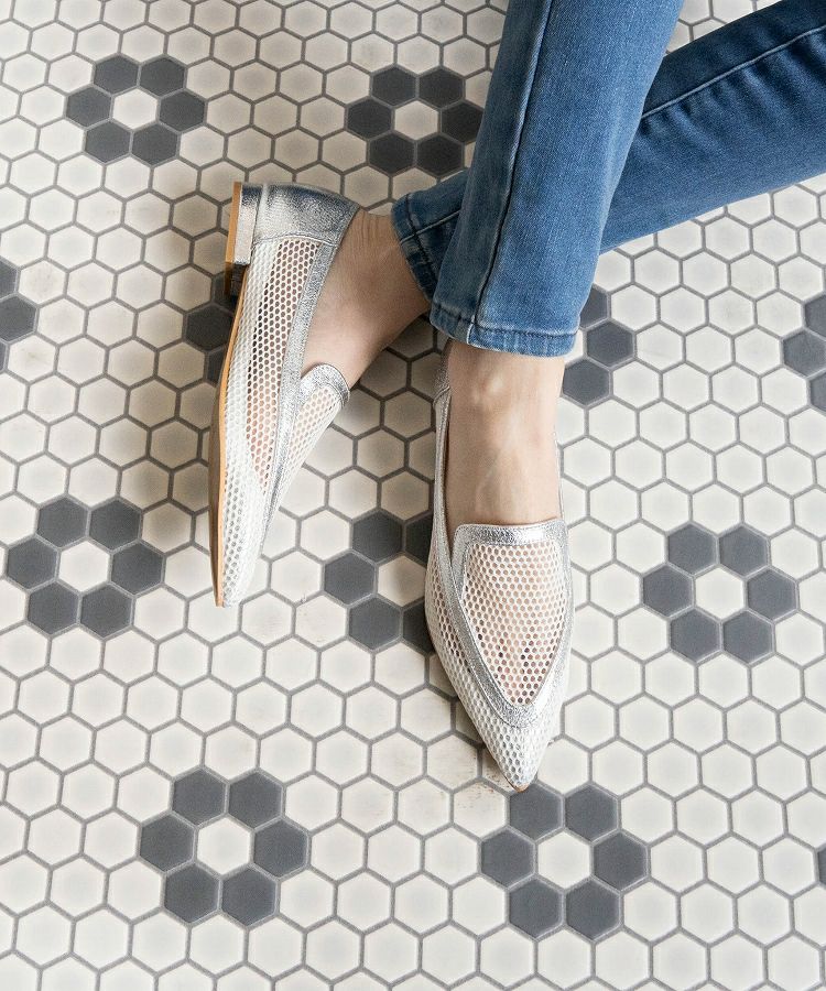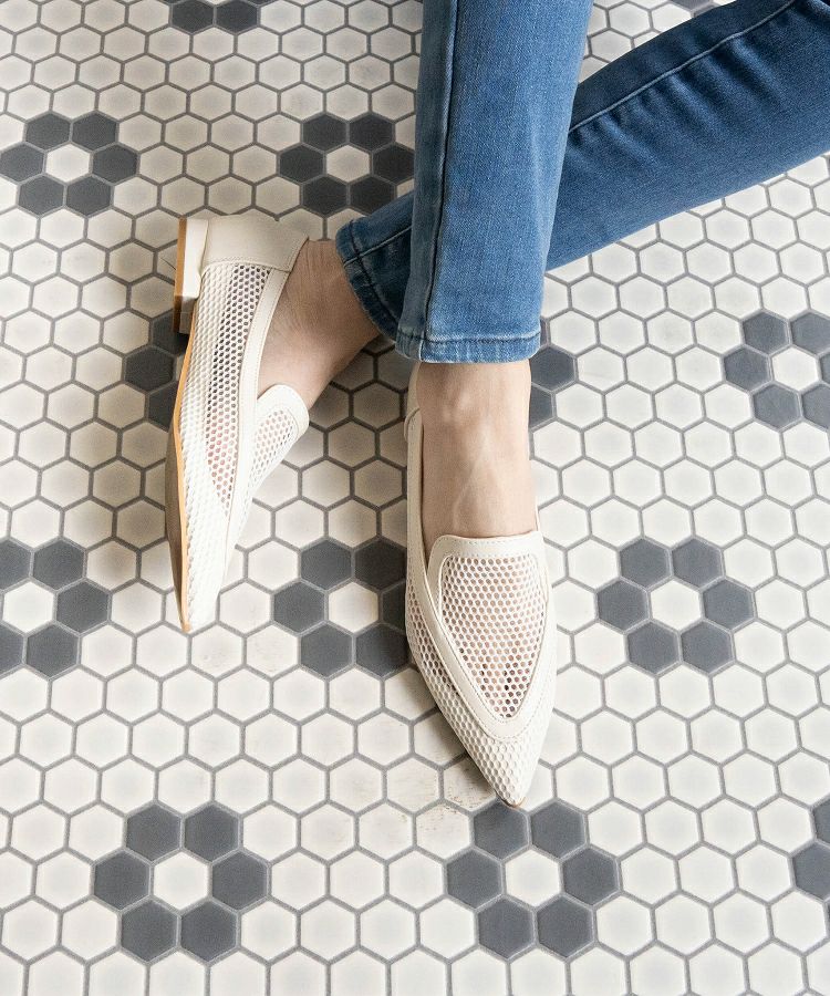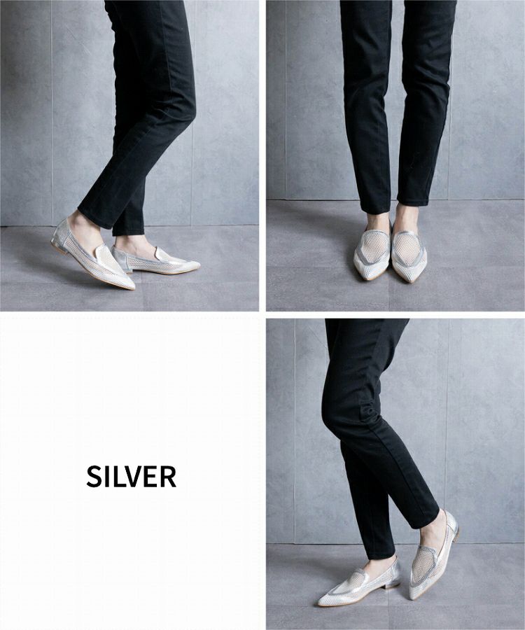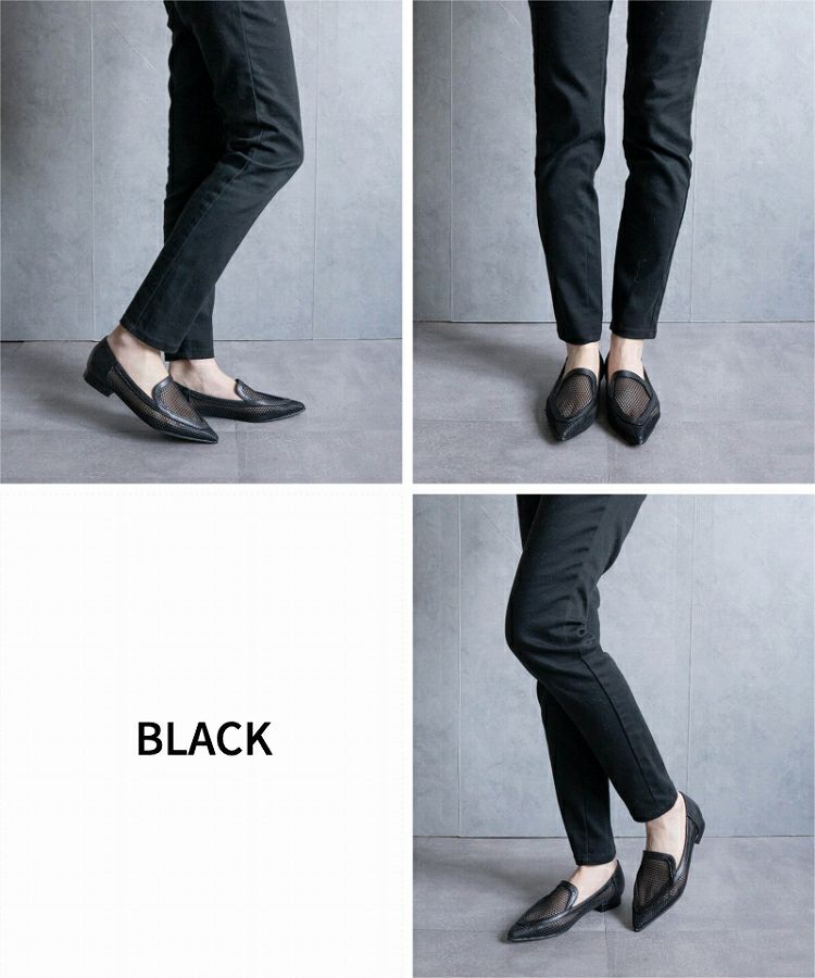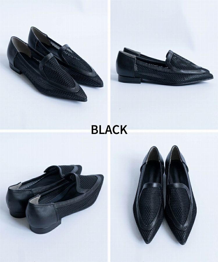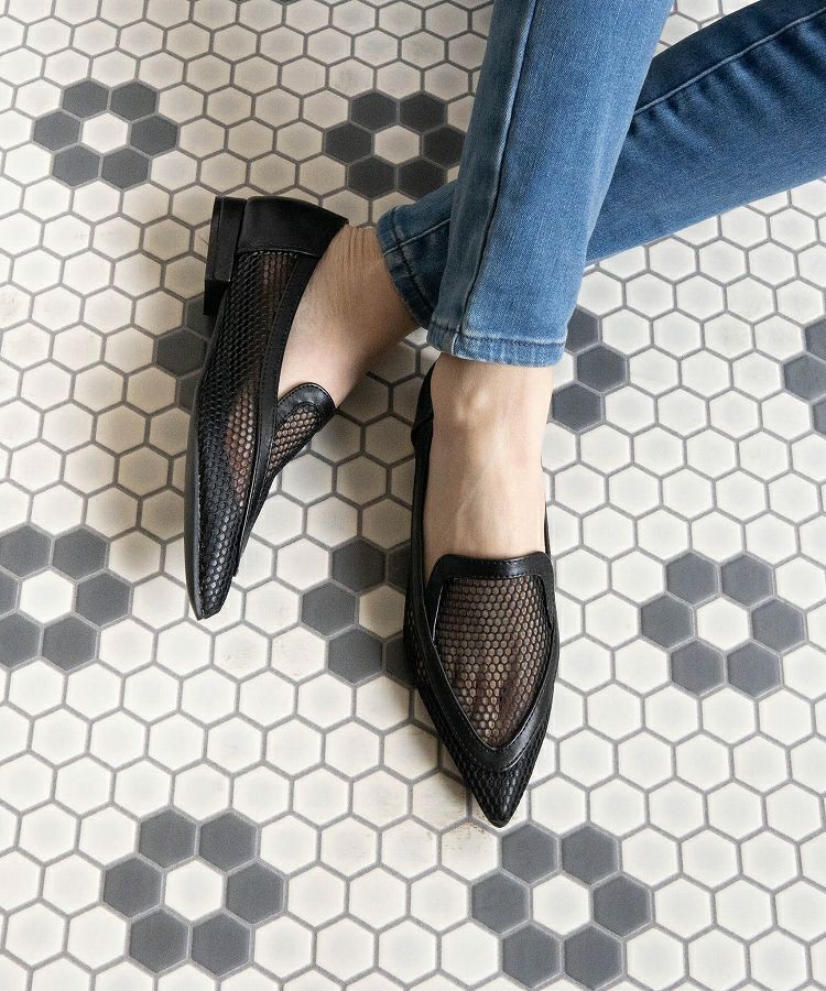 ポインテッドトゥのデザインとメッシュの透け感が、洗練された雰囲気を作り出し、特にオフィスやディナーなどのフォーマルなシーンにも最適です。