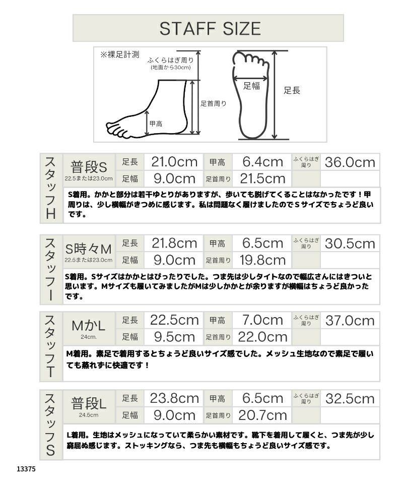 サイズ S(22.5~23cm) M(23.5~24cm) L(24.5~25cm)