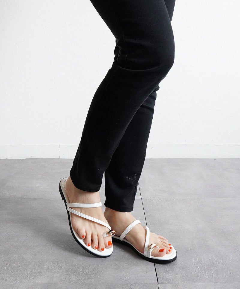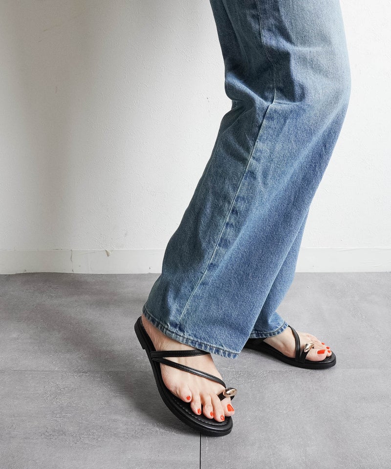 【華奢見え!細ストラップ・トングフラットサンダル】