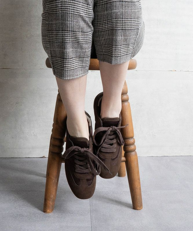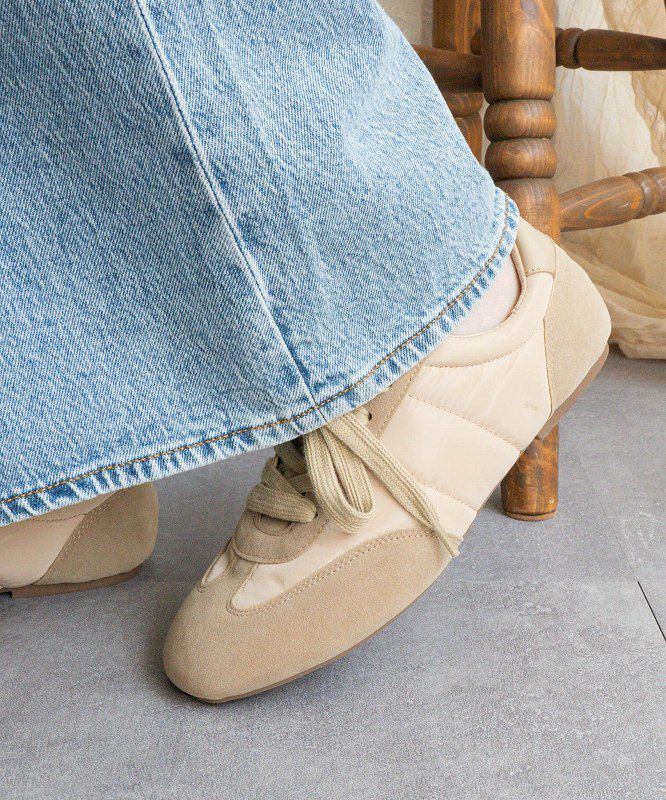 レースアップ仕様で足にフィットしやすく、丸すぎず細すぎない絶妙なシルエットも魅力。
