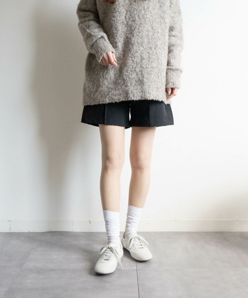 カラーソックスや足元にちょっとしたレイヤードを入れると、よりスタイリングに奥行きが出て◎
