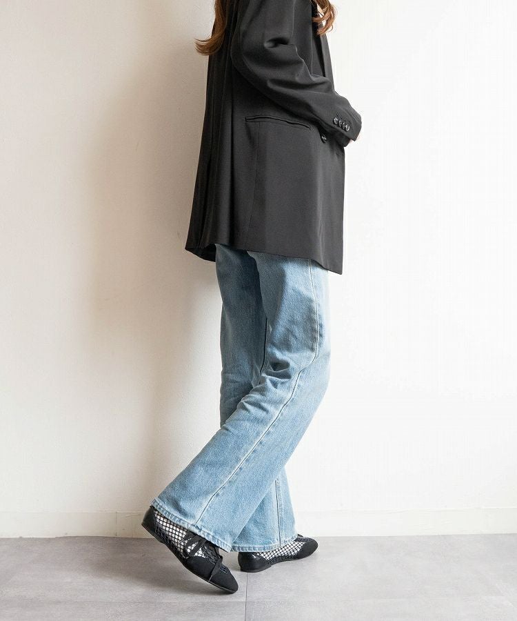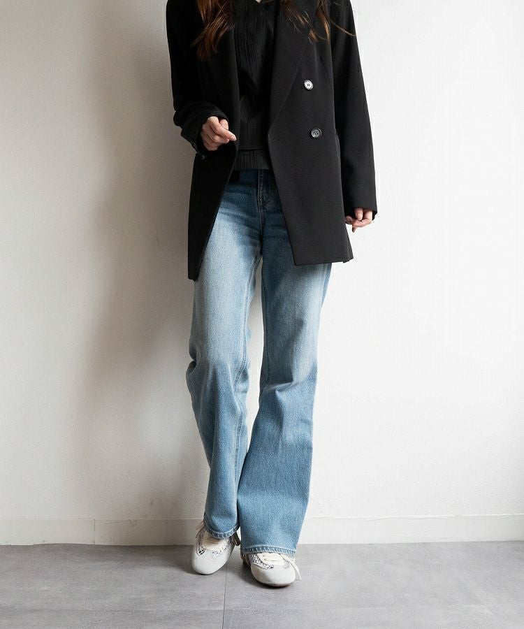 シルエットはすっきりめで、細身パンツにも相性抜群