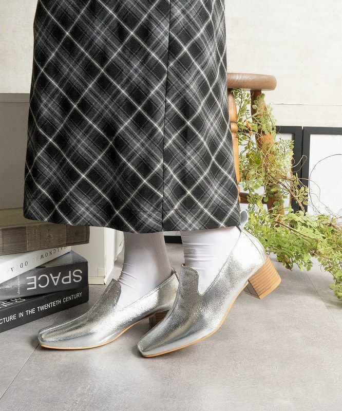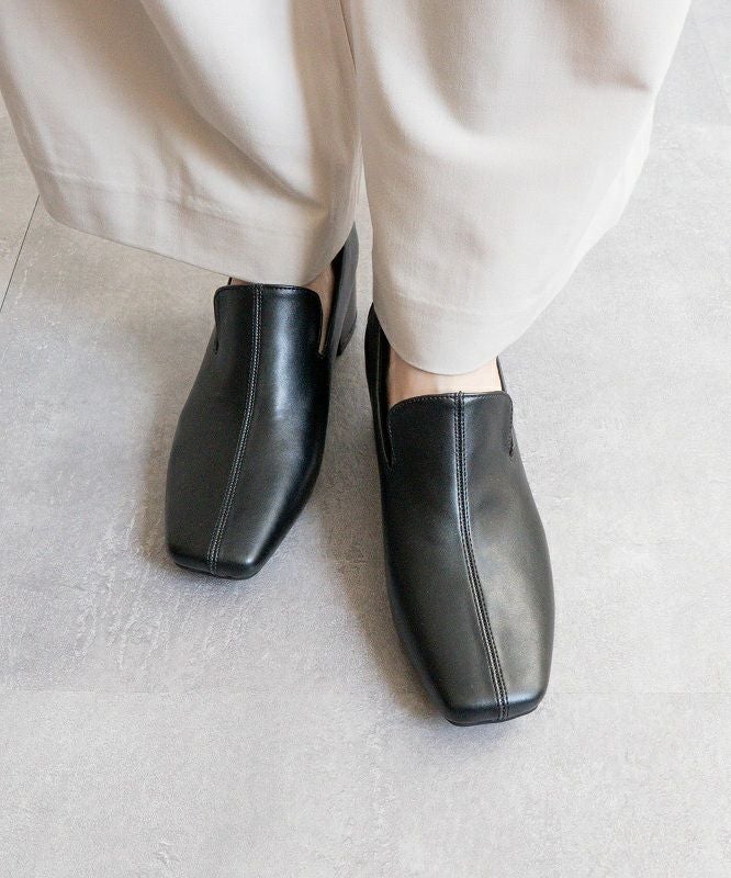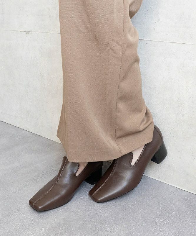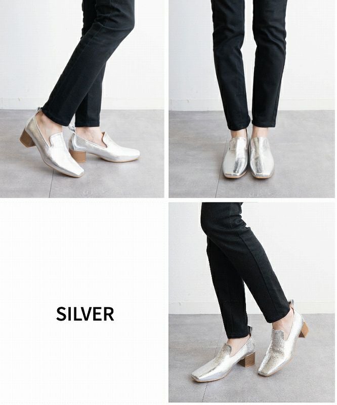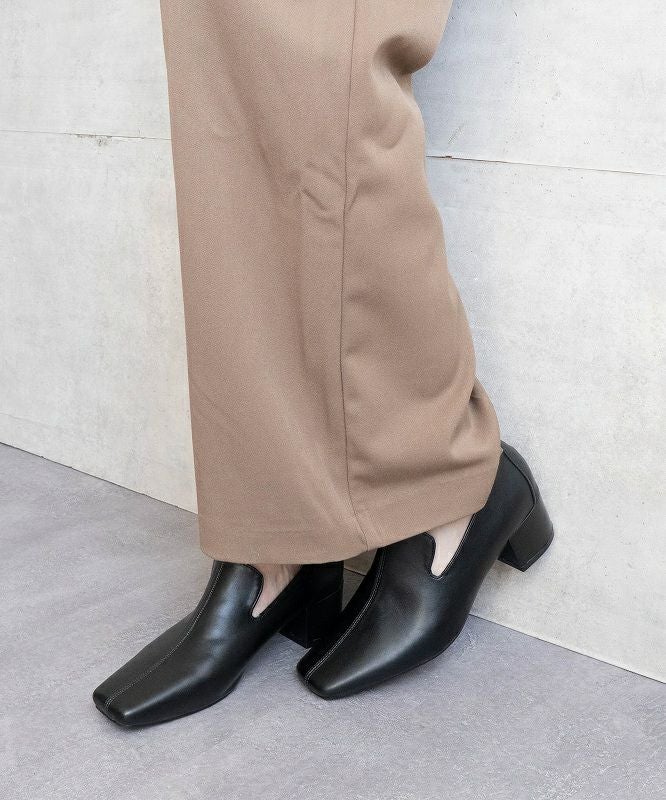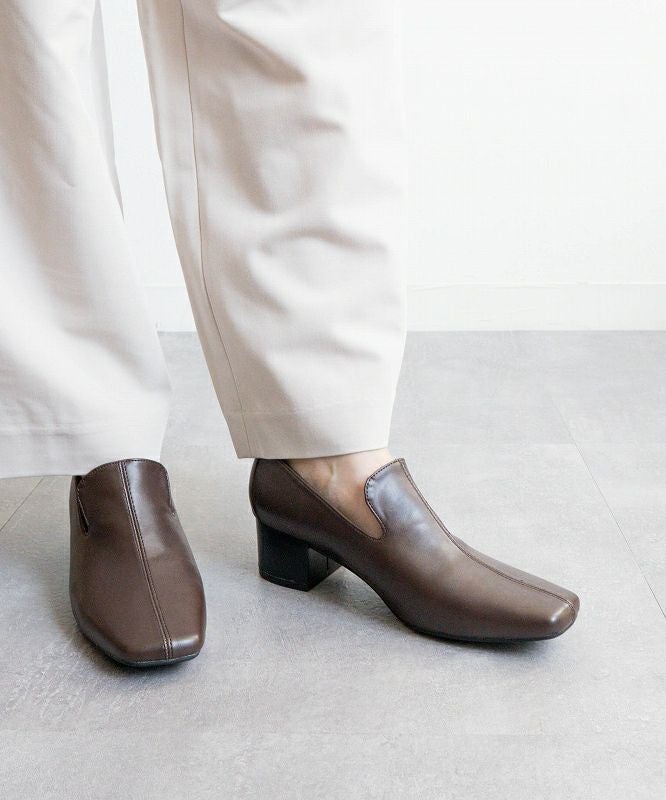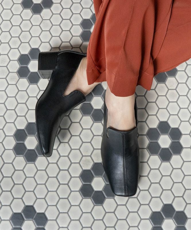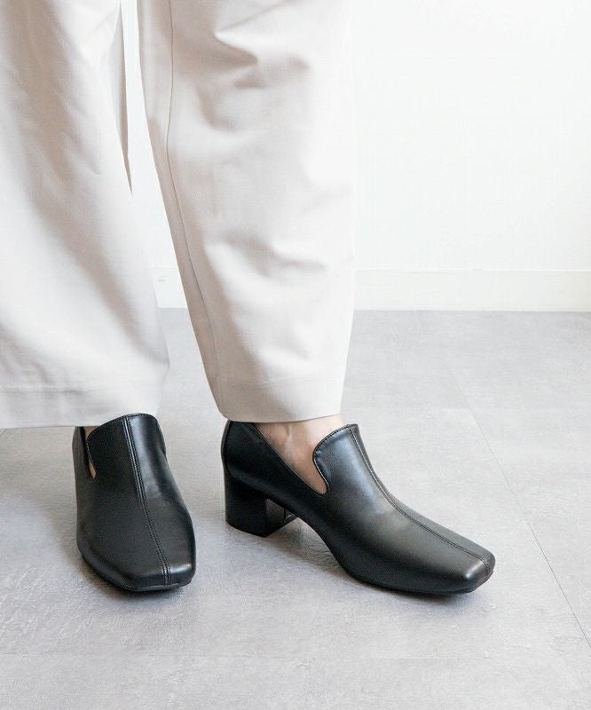シャープなスクエアトゥとモダンなヒールが印象的な洗練パンプス♪