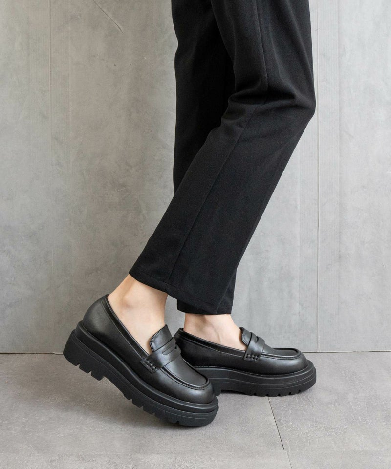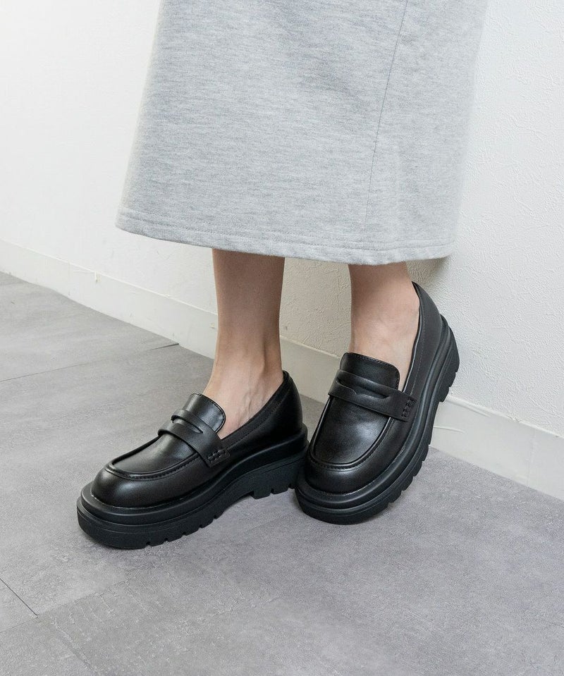 通常のローファーよりも厚みのあるヒールが特徴で、歩きやすい★
