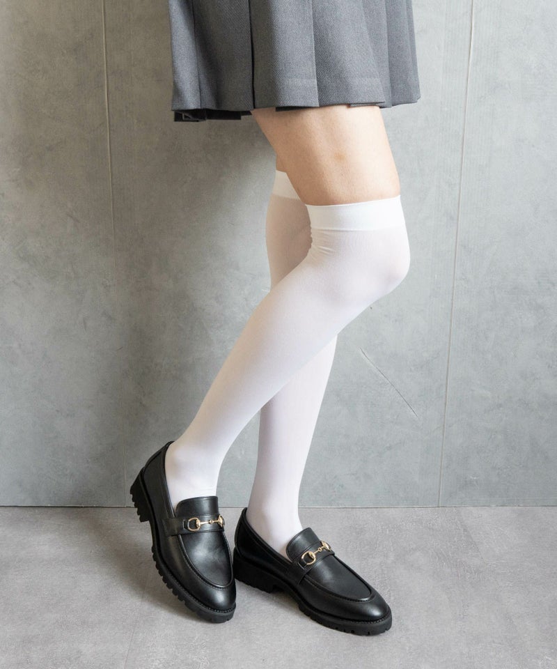 フラットなローファーと異なり、厚底がアクセントになり、シンプルなコーディネートを引き締めることができます。