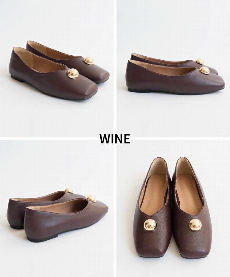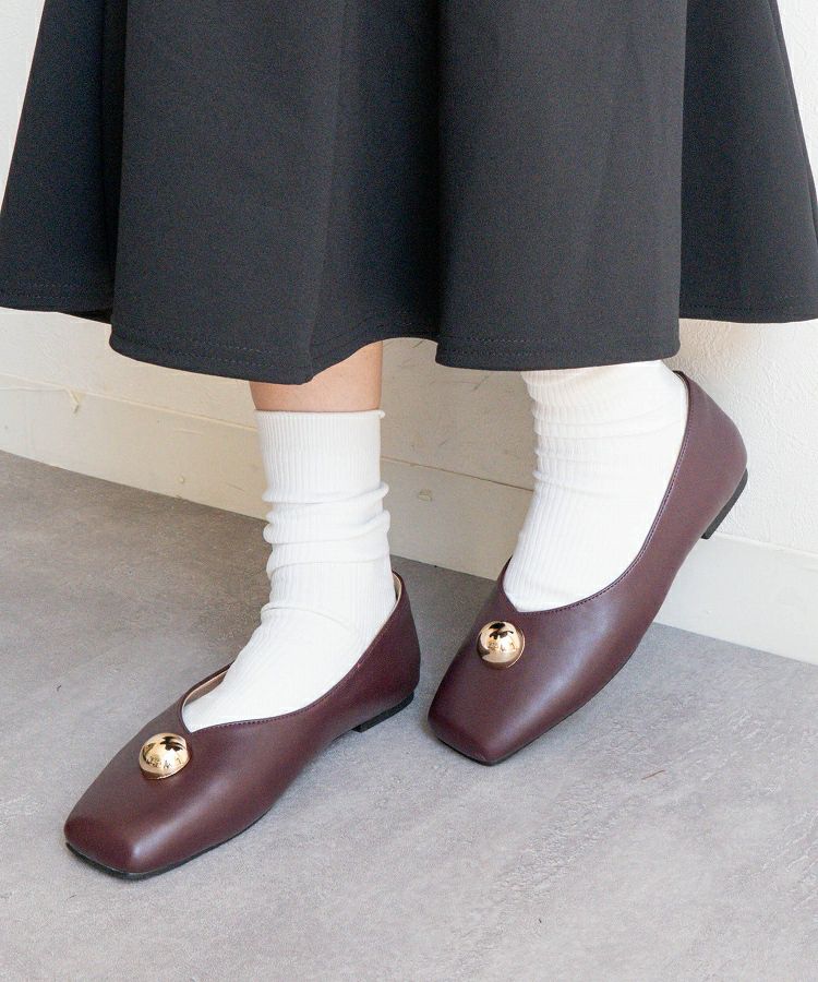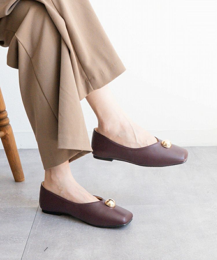 足元にほんのりアクセントを加えてくれる、メタルモチーフ付きのバレエパンプス。
