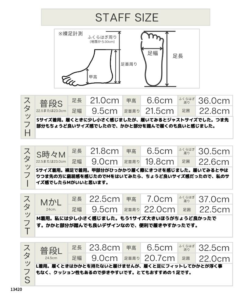 サイズ S(22.5~23cm) M(23.5~24cm) L(24.5~25cm)